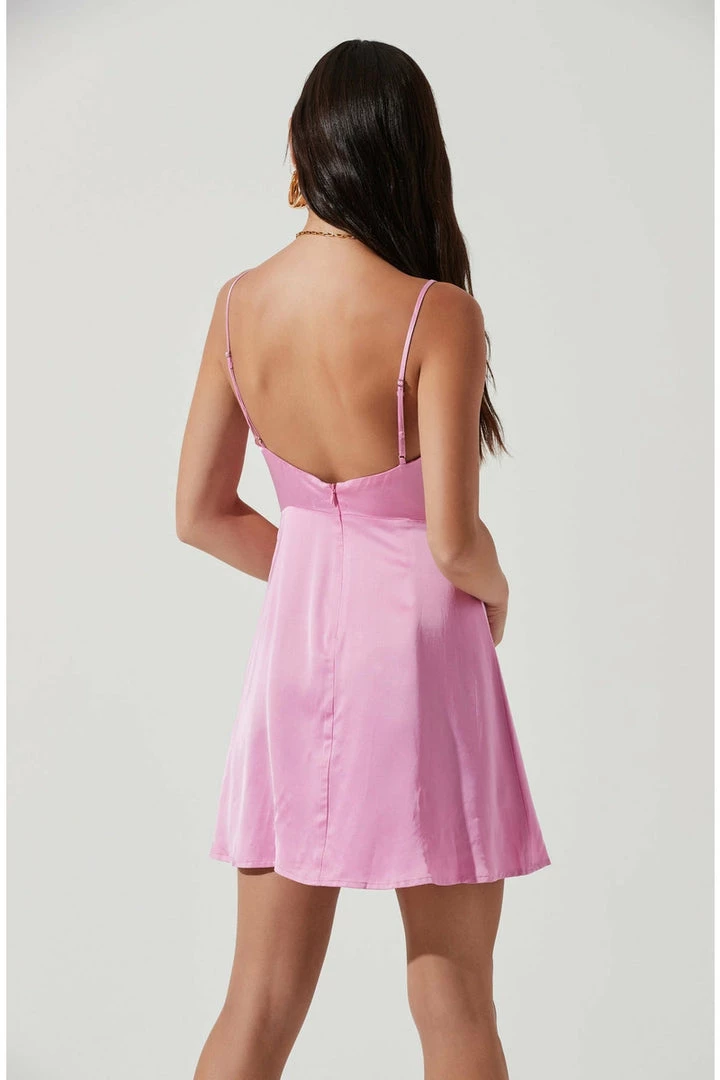 Instantly elevate your look with this satin mini dress. It features a plunge neckline that leads to a ruched front and abbreviated hem. Adjustable straps. Concealed back zip closure. Fully lined.