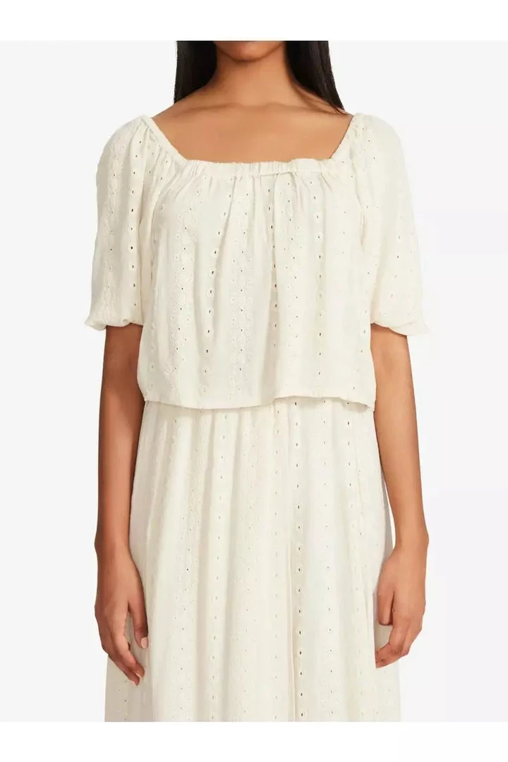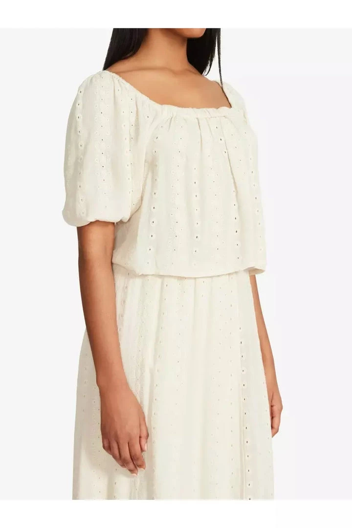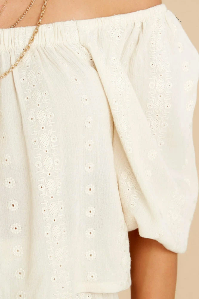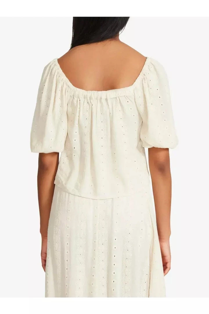- Eyelet swing blouse with voluminous elbow length sleeves