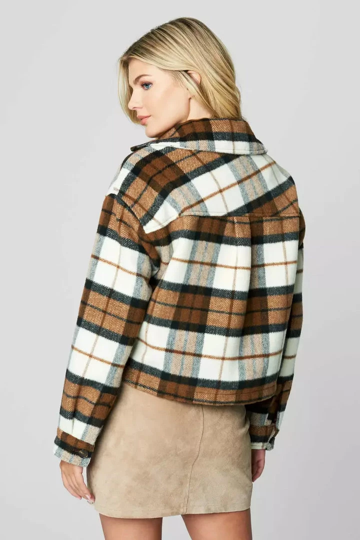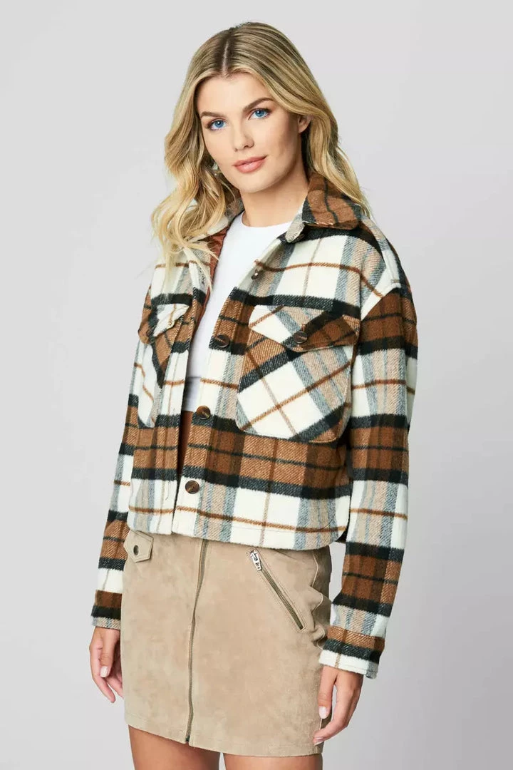 This cropped plaid shacket from Blank NYC, is the perfect way to top off any outfit.