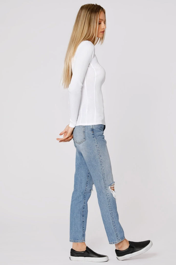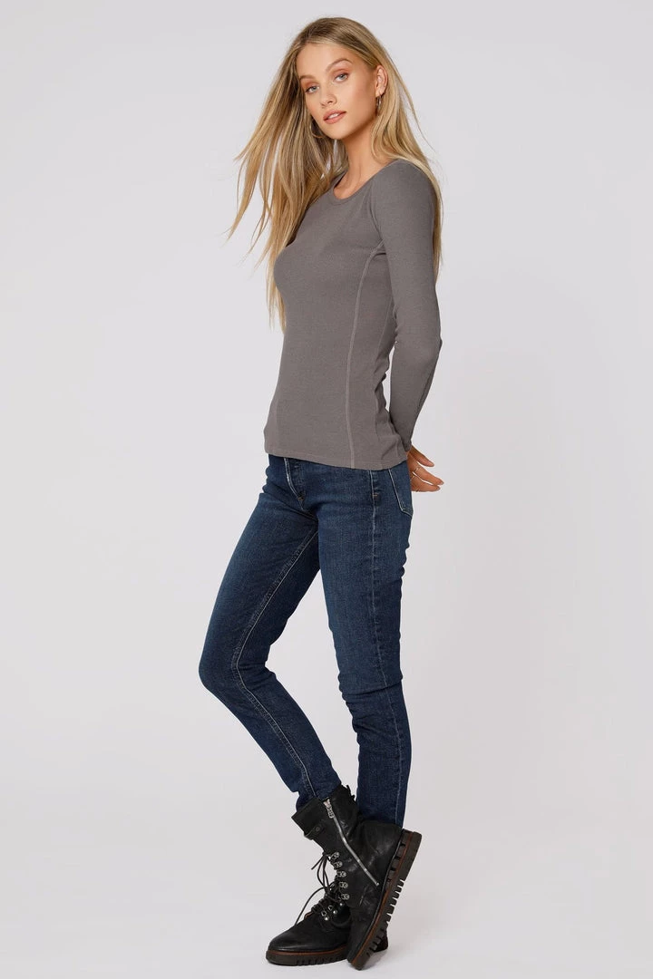 The classic crewneck has been given a style boost! The fitted bodice, long sleeves, and crew neckline are elevated by a ribbed inset on both sides that adds textural interest.