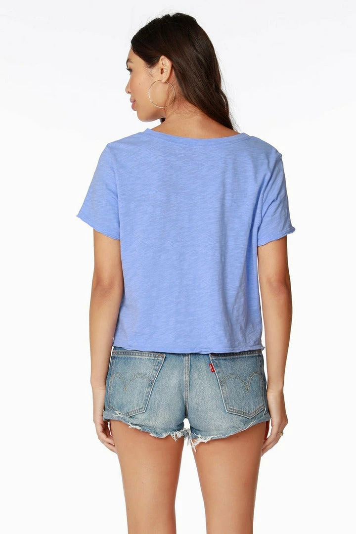 Cute, cropped, boxy, and ready to go! This adorable tee has a v-neckline, hi-low hem, and raw edge details. It is simple, classic, and a piece every woman needs in their closet!
