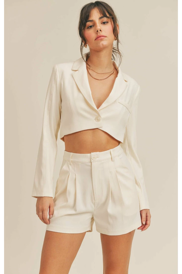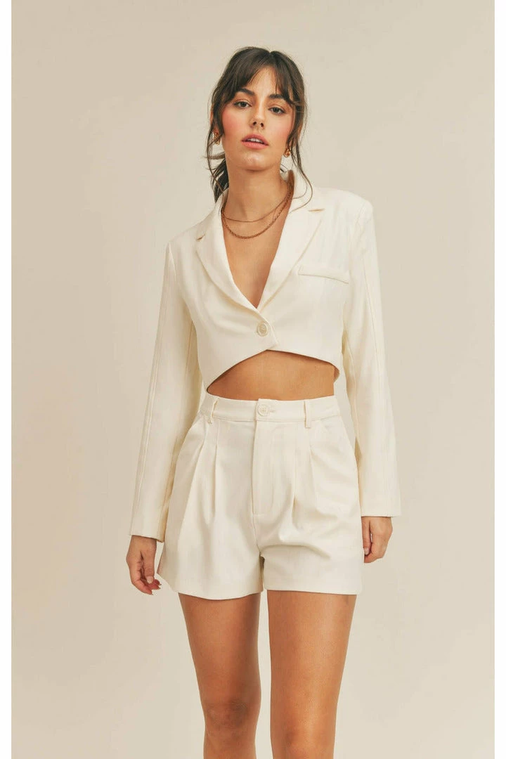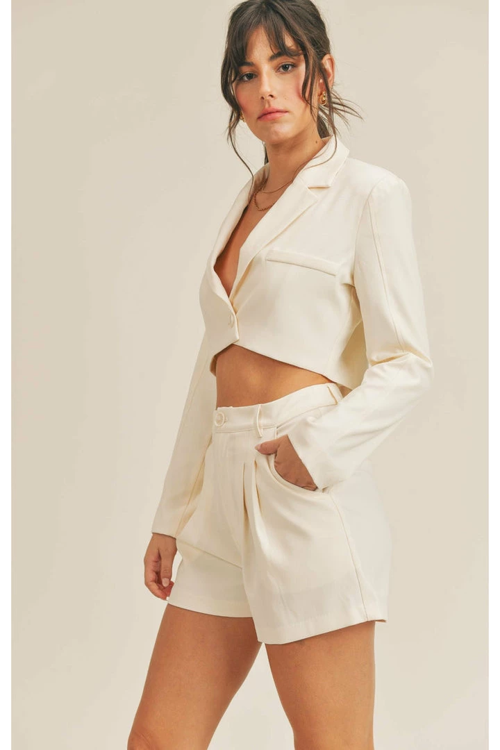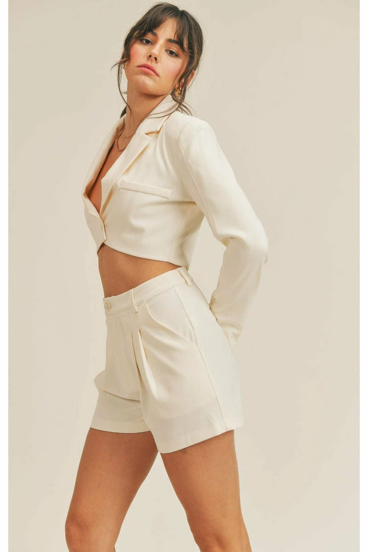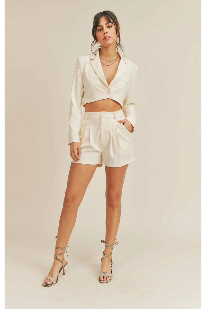 These Sage the Label Standing Here Shorts are classic in ivory. Pair with the Standing Here Blazer for the ultimate chic look.