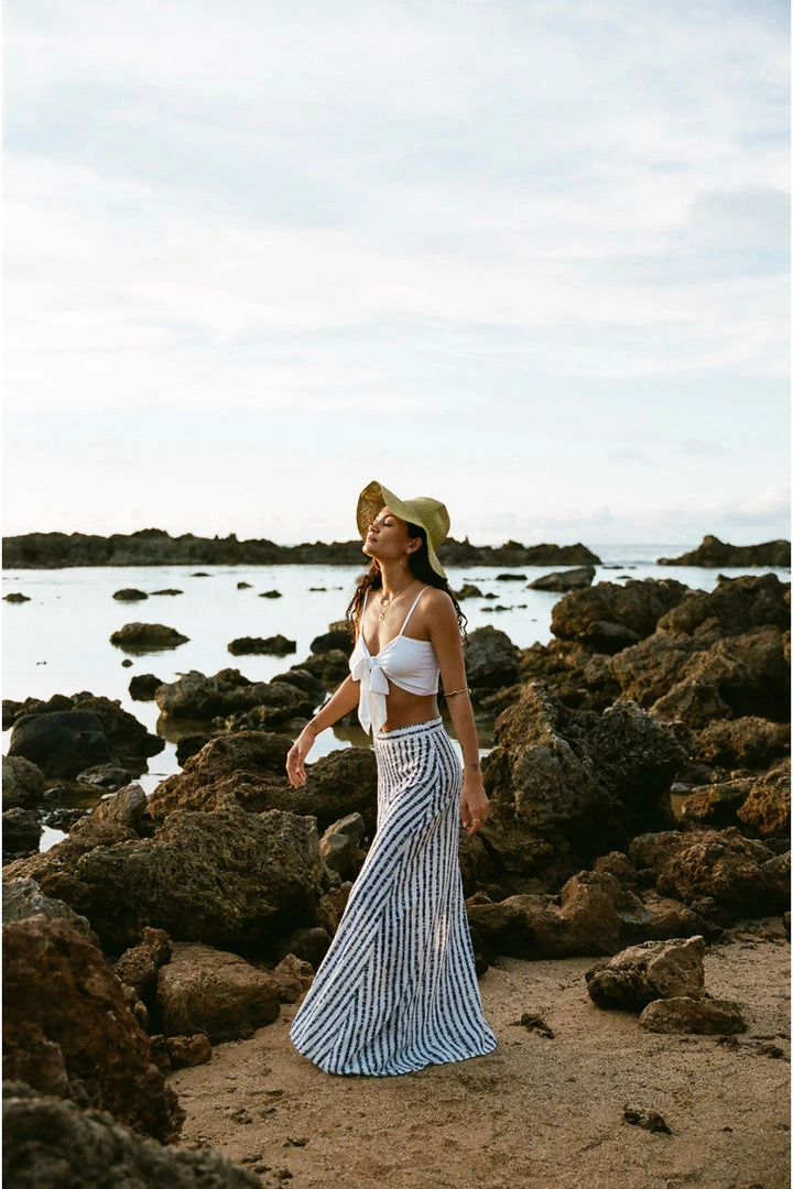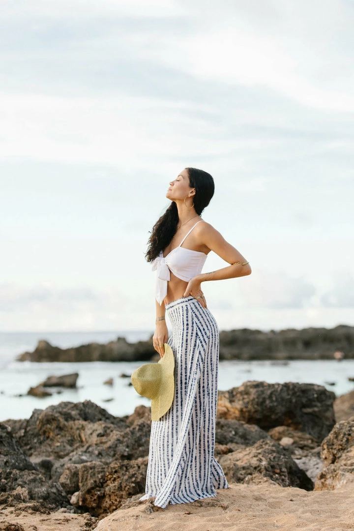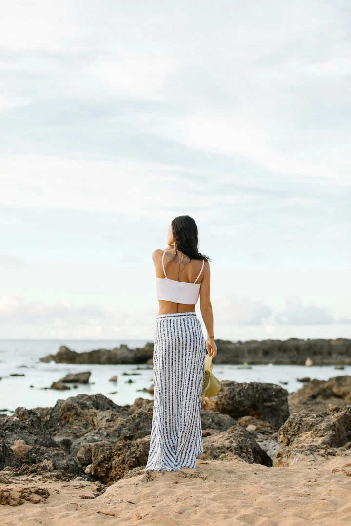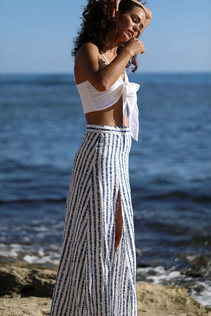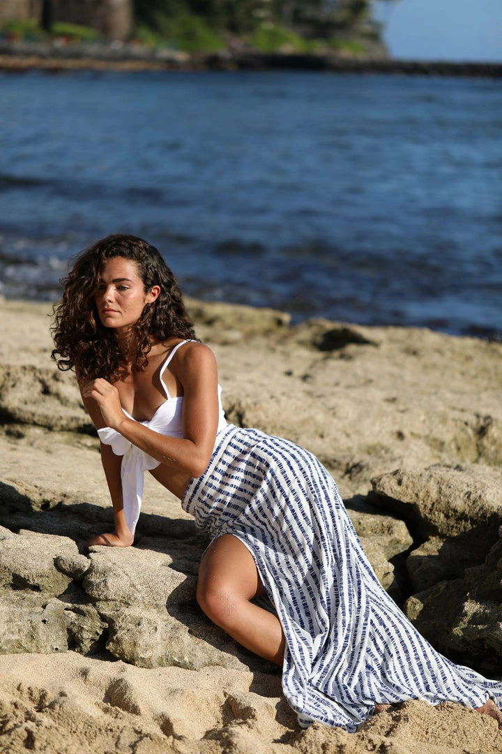Even if you aren’t at a resort you’ll feel like you are when you slip into this piece. Features a hidden side zip and high slit to show off your stems.