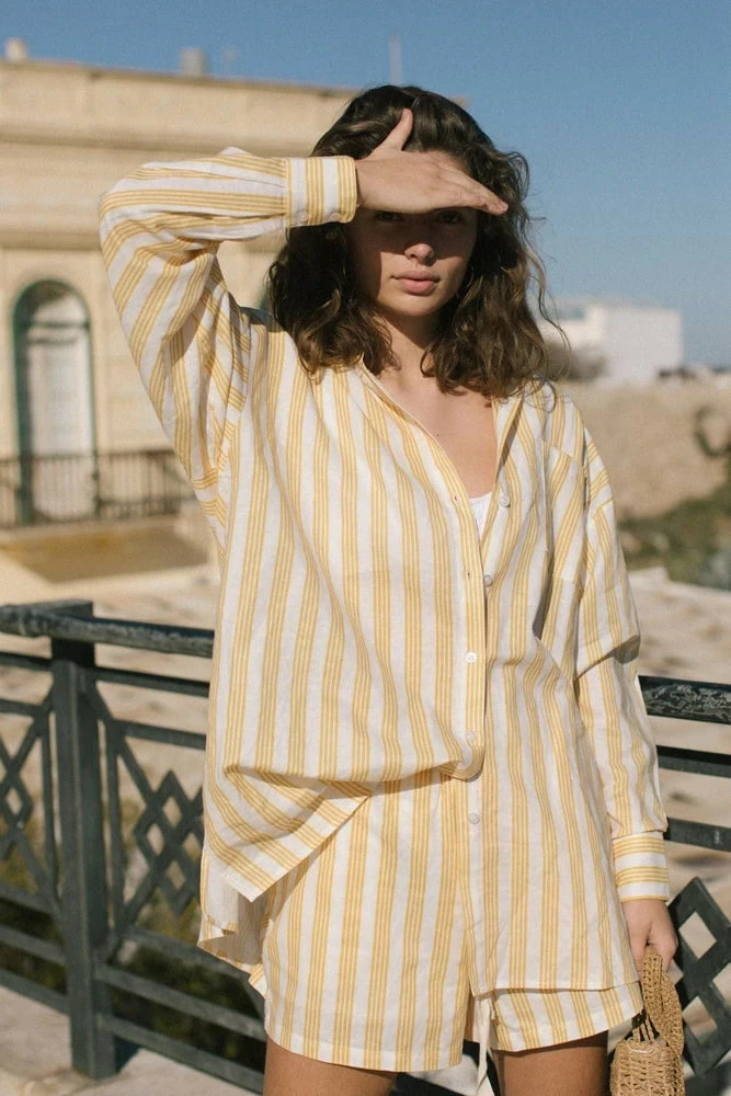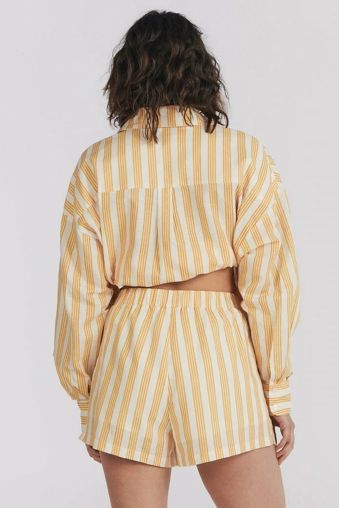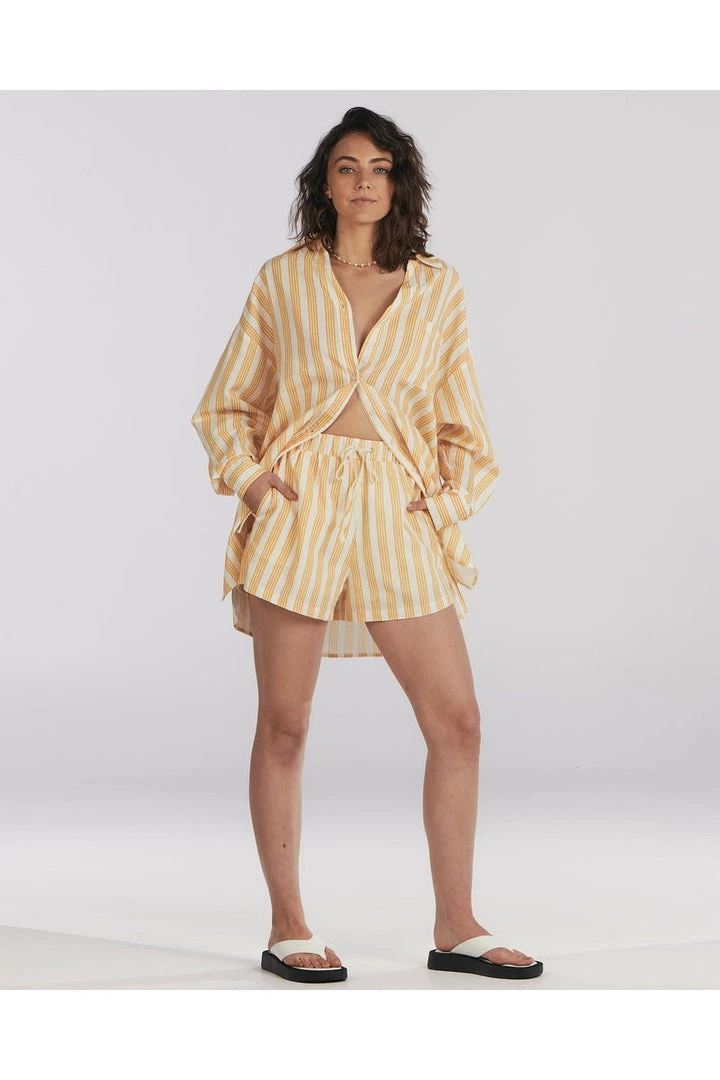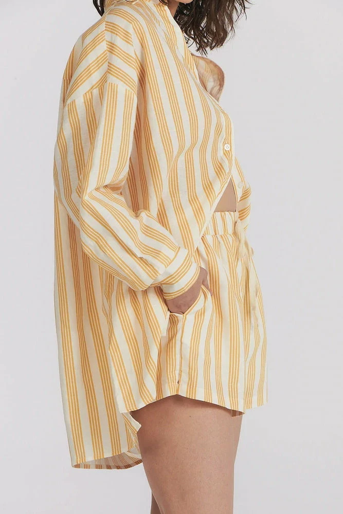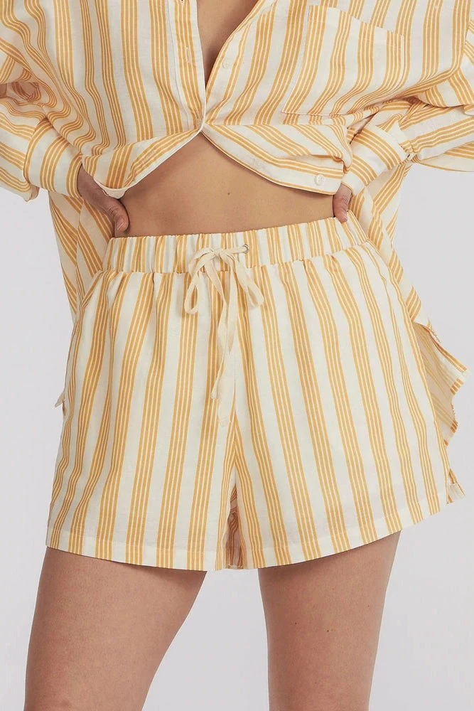 Our sunset pinstripe colourway features in this relaxed drawcord short. Wear with the coordinating Isabella shirt for a relaxed weekend at home.