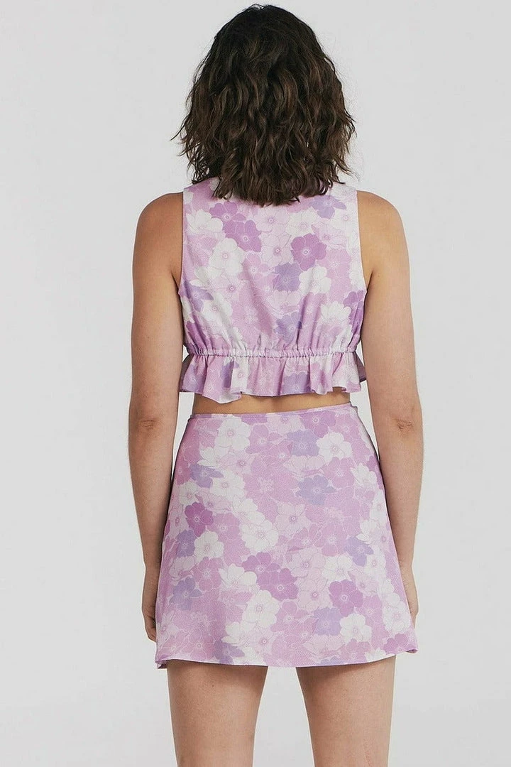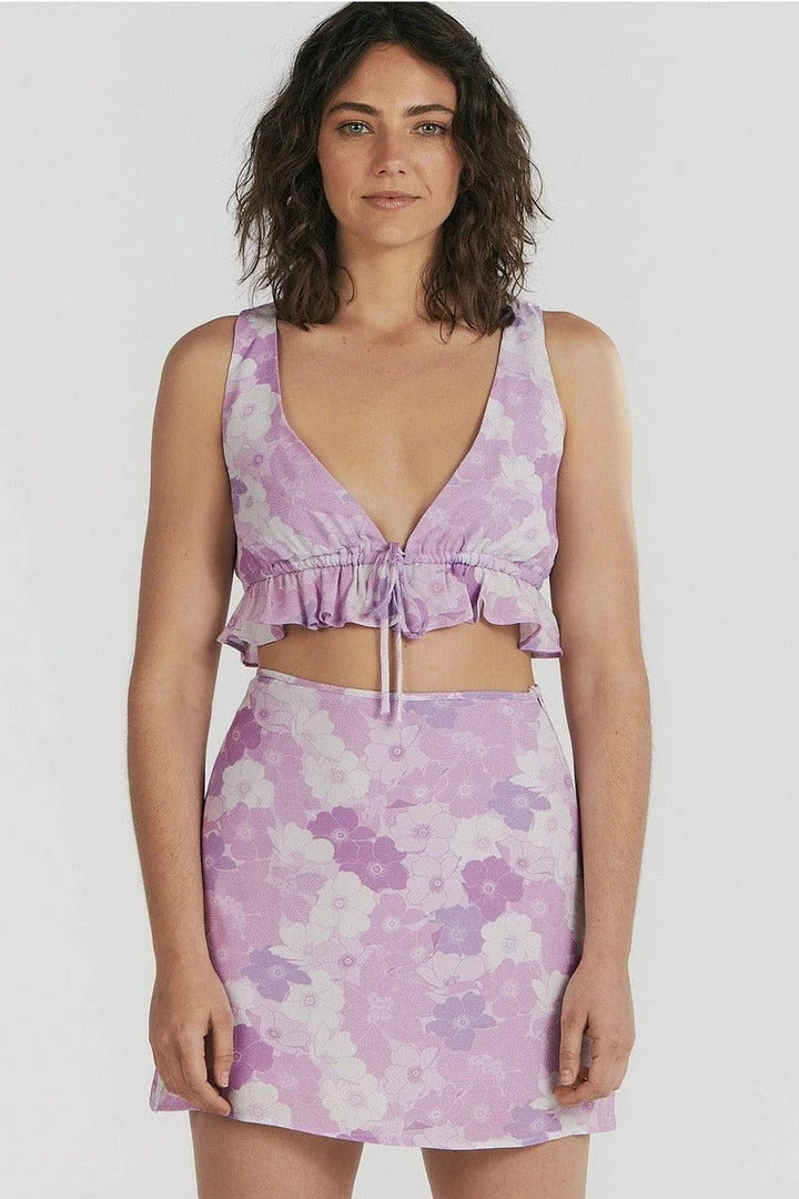 We love the ruffle trim and flattering V neckline of this sweet bralette crop top. Team it with the Phoebe mini skirt and heels for a balmy night out.