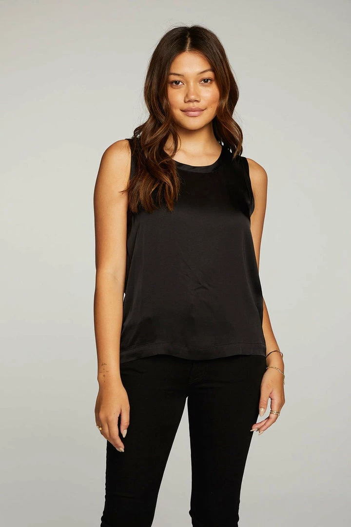 This silky muscle tank provides stretch—and an easy option when you need something dressy on the fly.
