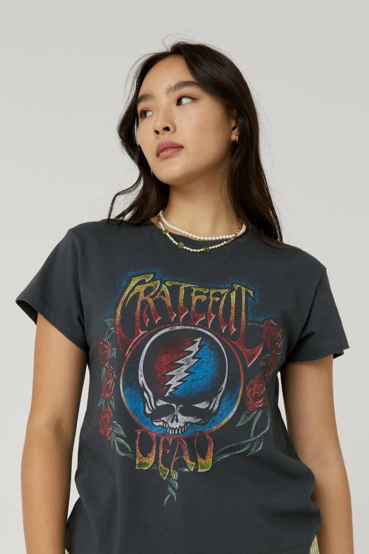 Make room, Grateful Dead’s newest tour tee has landed. “Steal Your Face” was a live double album by the legendary band with iconic cover art of a lightning skull. Featured on our latest tee to enter the rotation, the Grateful Dead Steal Your Face of Roses Tour Tee is designed in fiery colors with the group’s most notable symbols and added roses to really encapsulate the boys’ legacy.