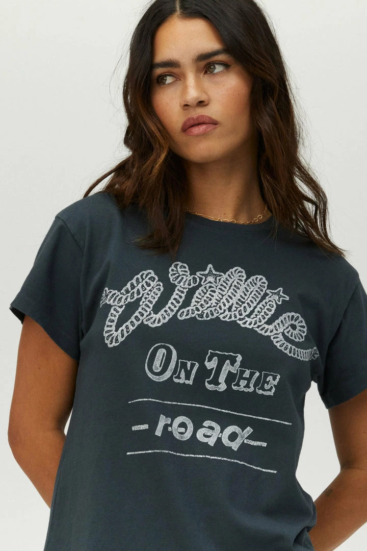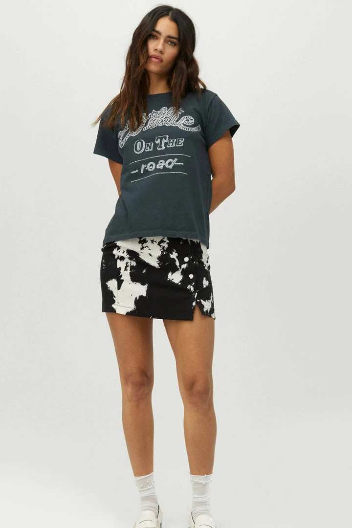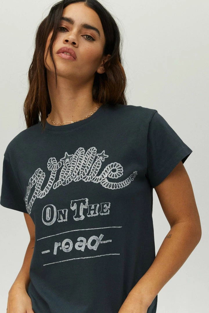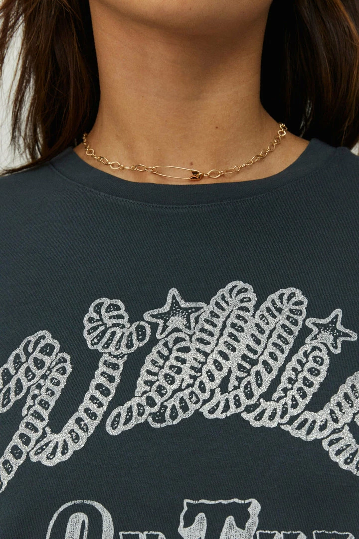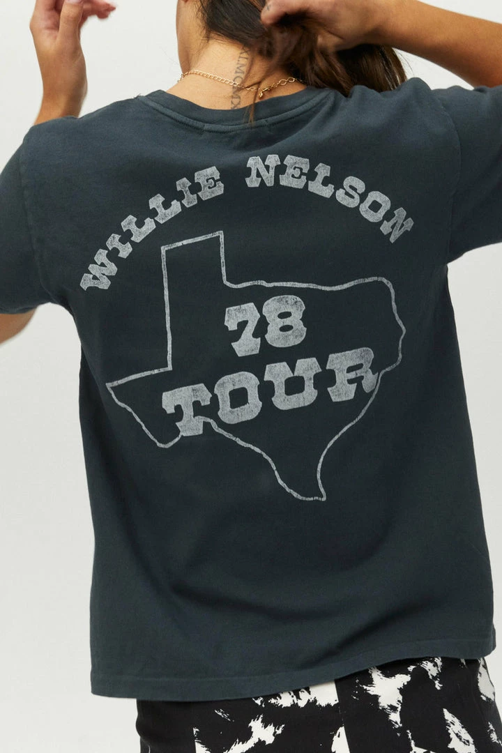 Made from a heavier loose knit cotton jersey, the tour tee features an open feminine neckline and ultra-flattering draped sleeve. With a length that shows off all your assets, this style is accented with classic vintage blind stitch.