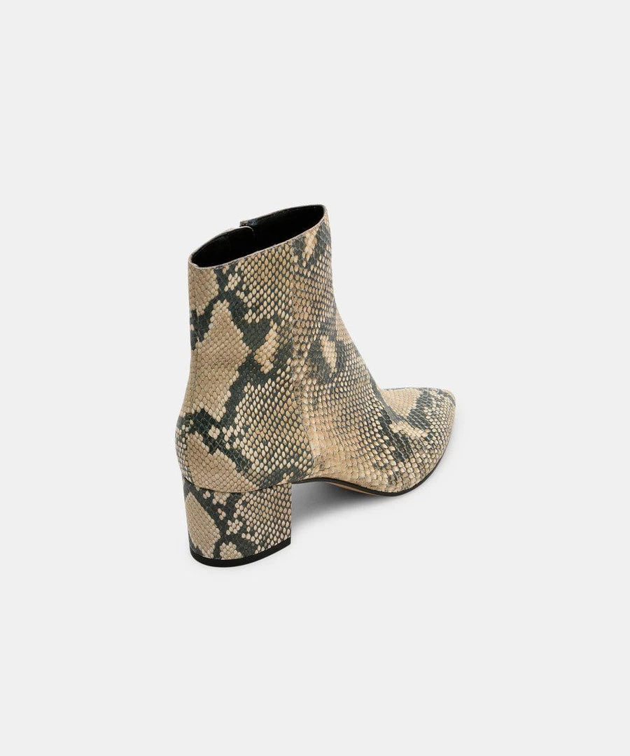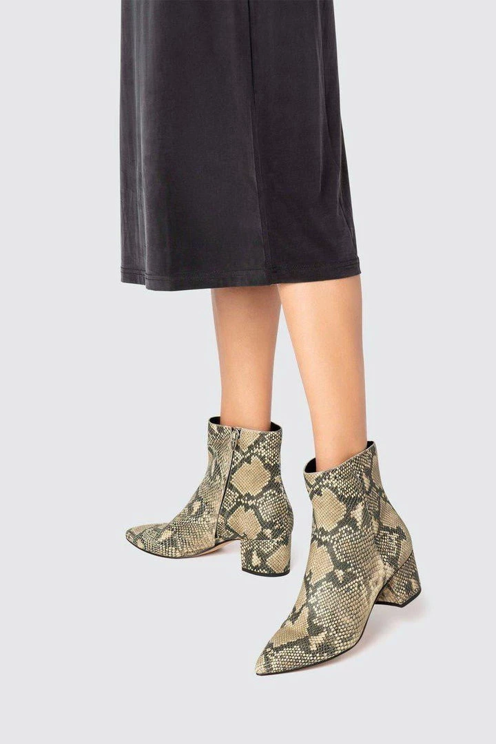 Mix it up, with the BEL bootie in SNAKE. Whether you want a basic black bootie or a bold color this bootie is a staple.
