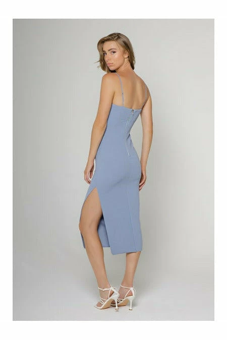 This Midi Dress from Lavender Brown is made with a ponte knit fabric that has a little bit of stretch for a comfortable fit. We love high side slit and square neck for a modern look.