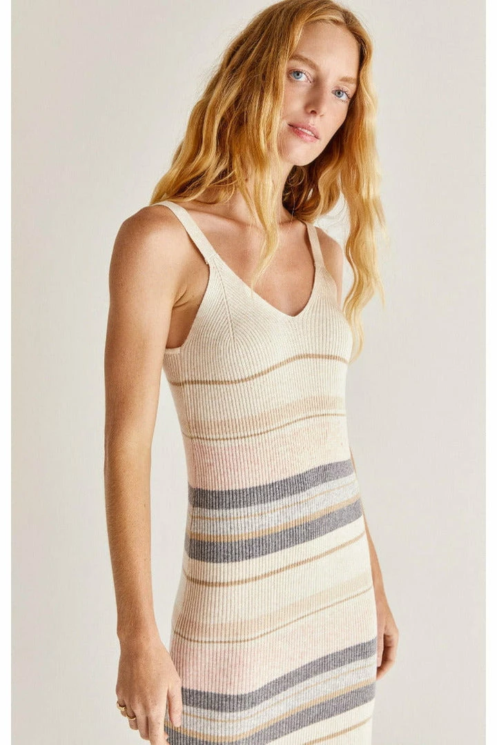 Simplicity is underrated and we’re loving the clean lines and simple design of this soft and comfy sweater dress. The Malibu Stripe Sweater Dress is made using our rib sweater yarn and features a v-neckline and multi-stripe pattern.