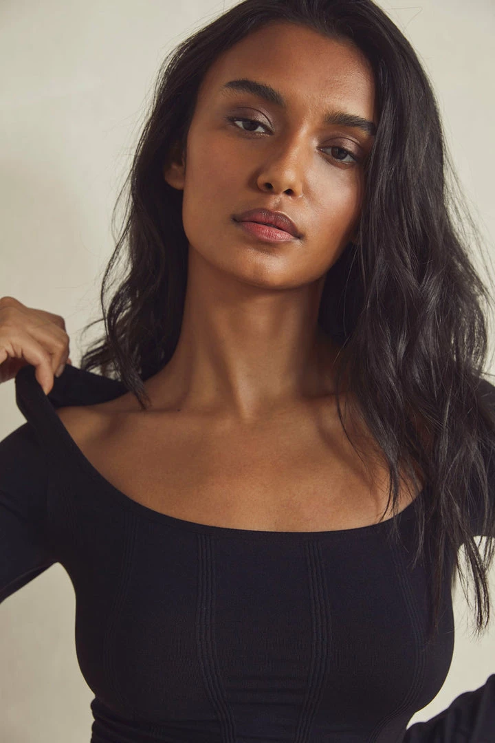 Smoothing, seamless, and essential—this perfect long-sleeved top features a square neckline and slim silhouette with seamed paneling down the front for added shape.