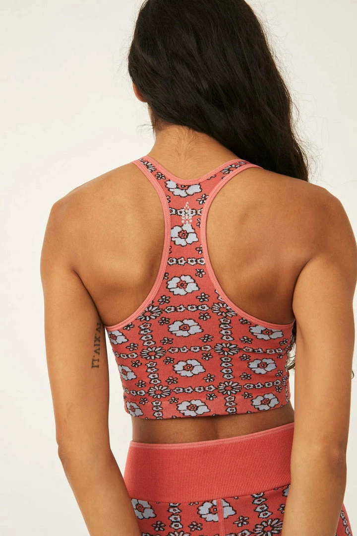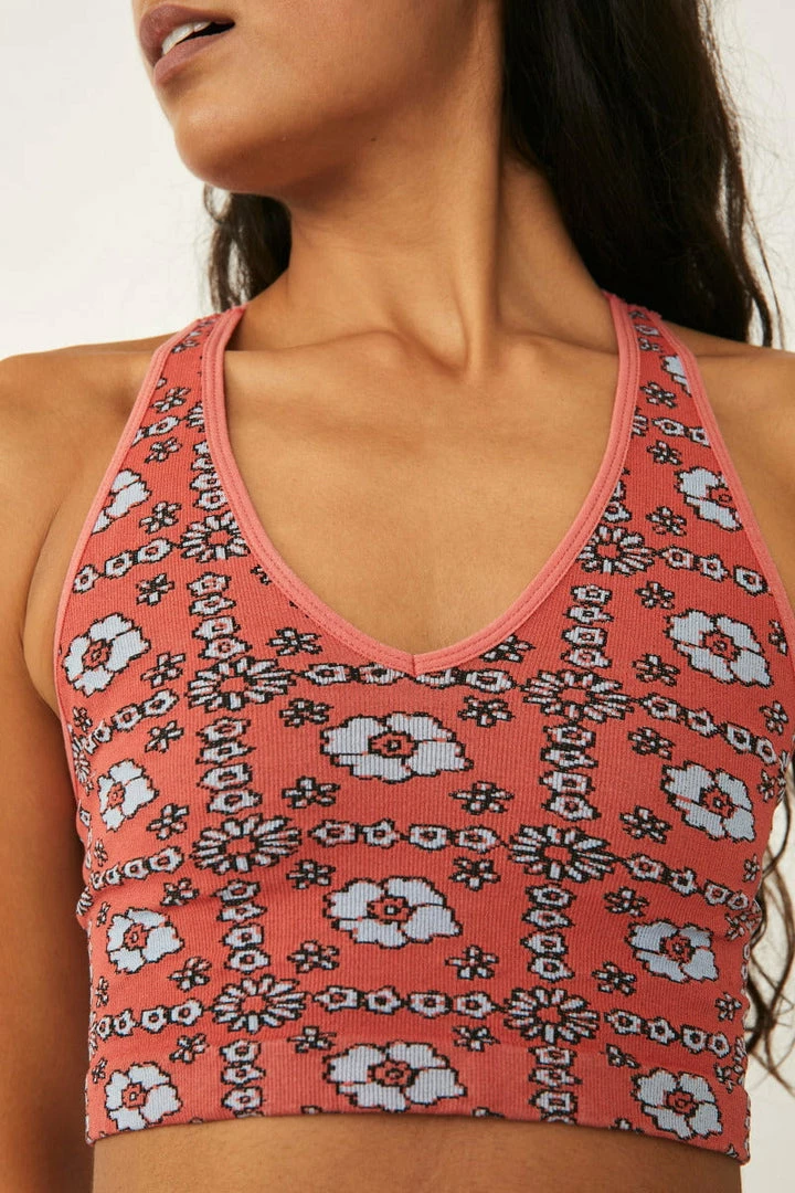 Meditate or make a move in this ribbed compression fit crop featuring a V-neck racerback design that keeps you feeling secure as you work out, accented by a cool jacquard print.