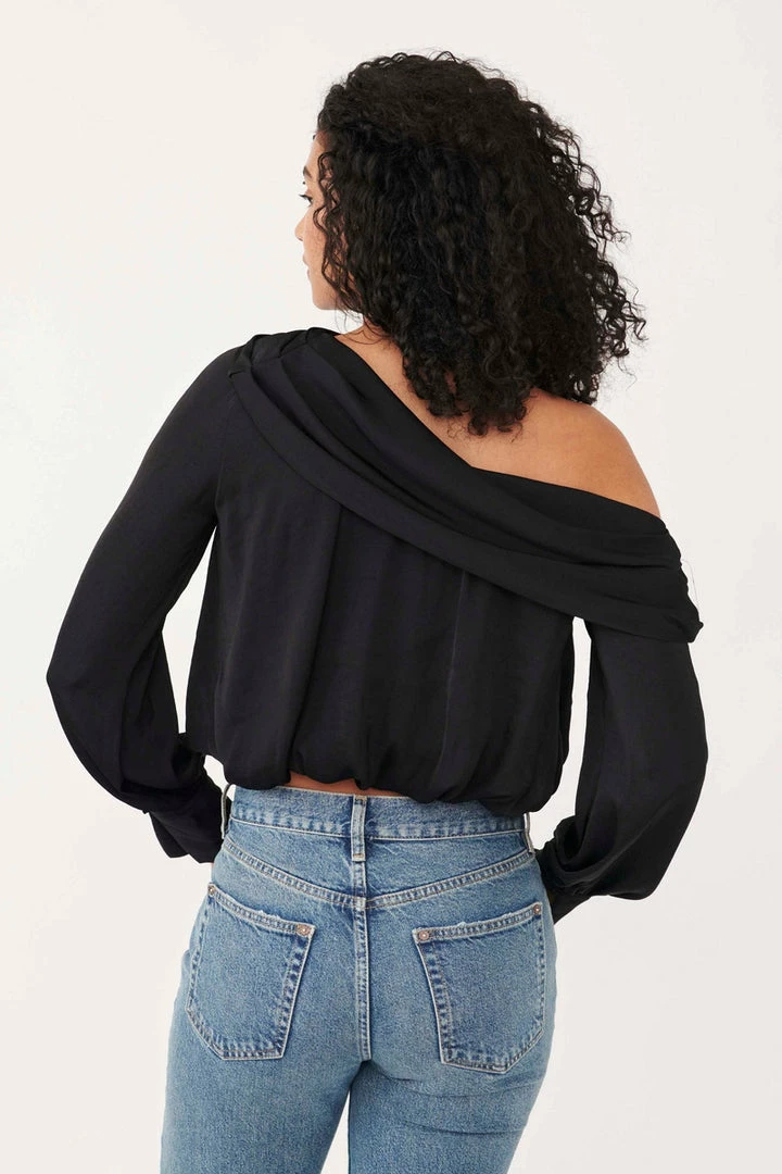 Forever classic with a contemporary touch, this totally timeless top is featured in a drapey, off-the-shoulder silhouette and stunning silk blend fabrication for staple style no matter the occasion.