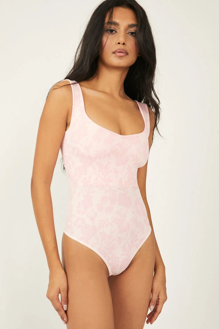 So sleek curve-hugging bodysuit featuring a dipped neckline and low U-back.