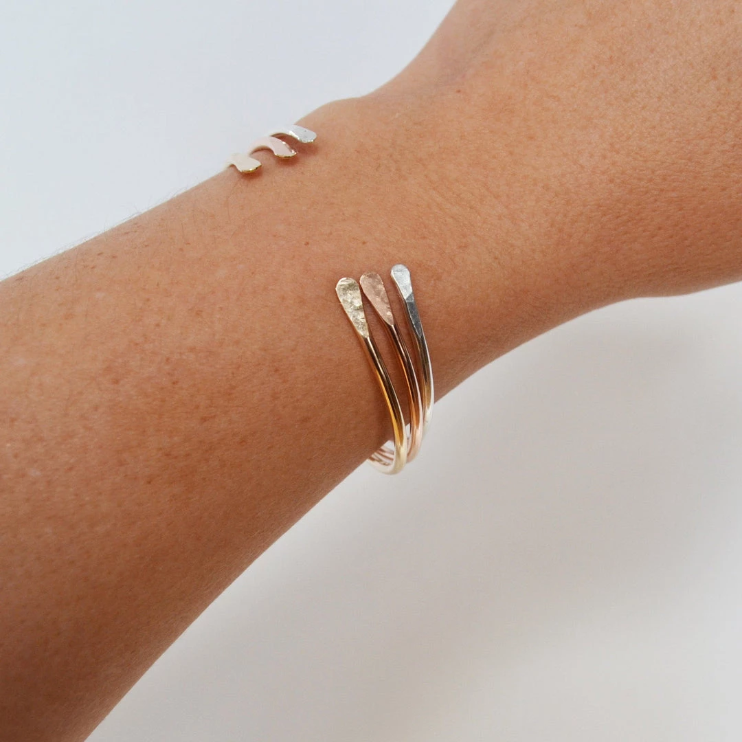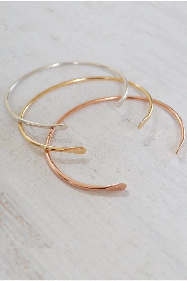 A simple, modern, everyday open cuff bracelet made from quality metals meant to last a lifetime. Wear it alone, or stack em up.