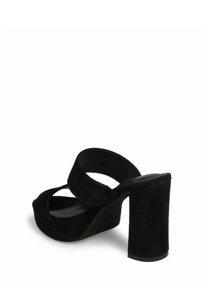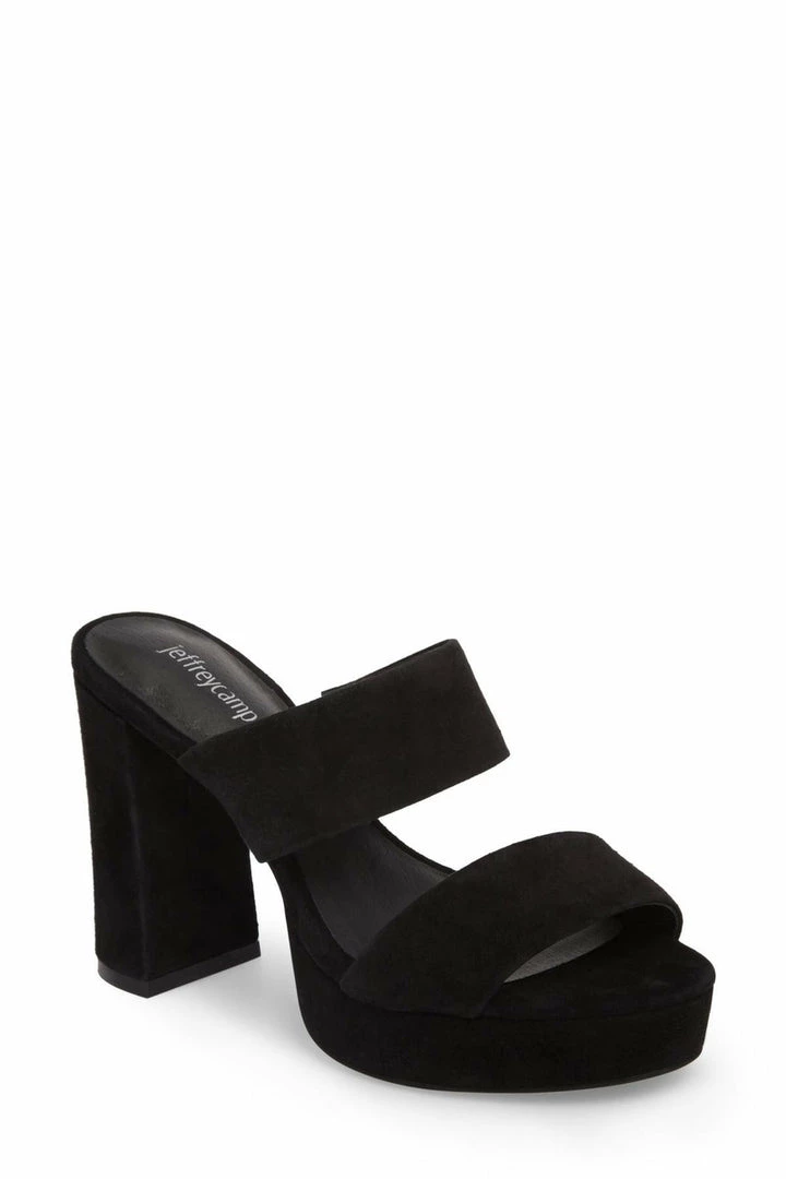 LA designer, Jeffrey Campbell, has perfected the platform sandal. This 70’s inspired silhouette always has a place in his retro inspired collection. This 2-band slide, the Adriana, is set on a chunky, towering heel and is balanced by a 1-inch platform. Style with bare legs and a flowy dress or cropped denim.