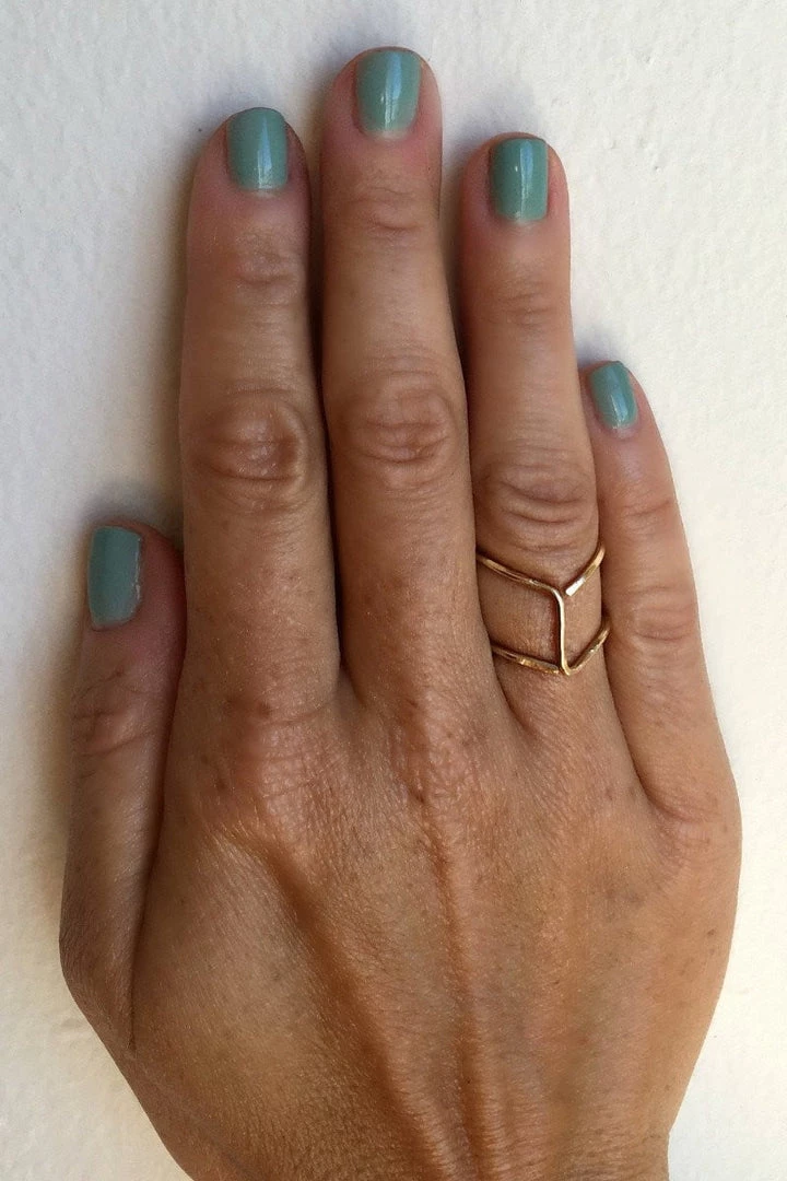 Hand forged gold filled double chevron ring. Wear it two ways for two different looks. Looks great with a few other dainty rings!