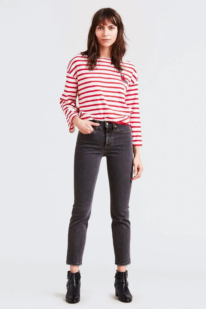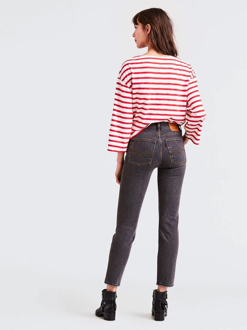 The Levi’s Wedgie Fit Jeans hug your waist and hips, showcasing your best assets. They feature a high rise, snug fit, and a tapered leg.