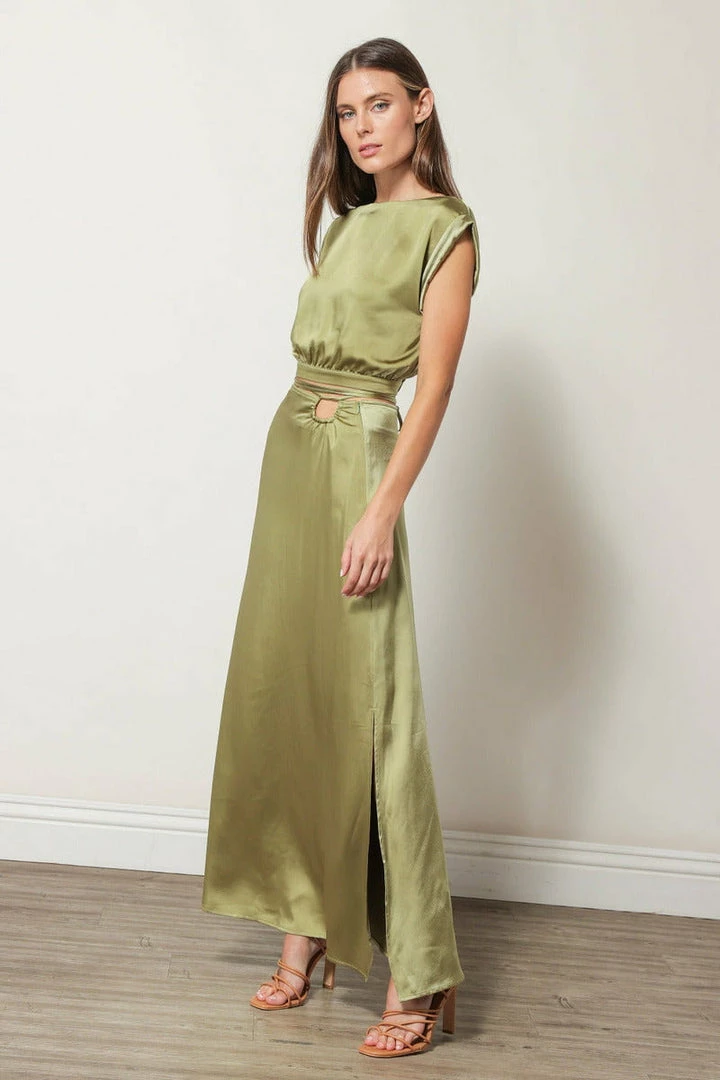 Line + Dot Elle Satin Midi Skirt Bottoms