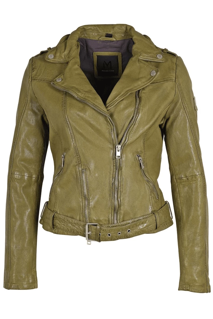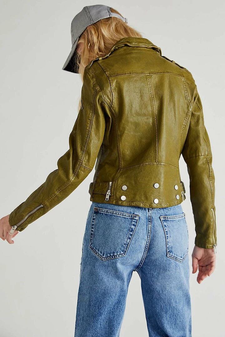Just as effortless as it is essential, this totally timeless leather jacket is featured in a textured fabrication with defined rivet detailing at bottom and buckle detail for added dimension.