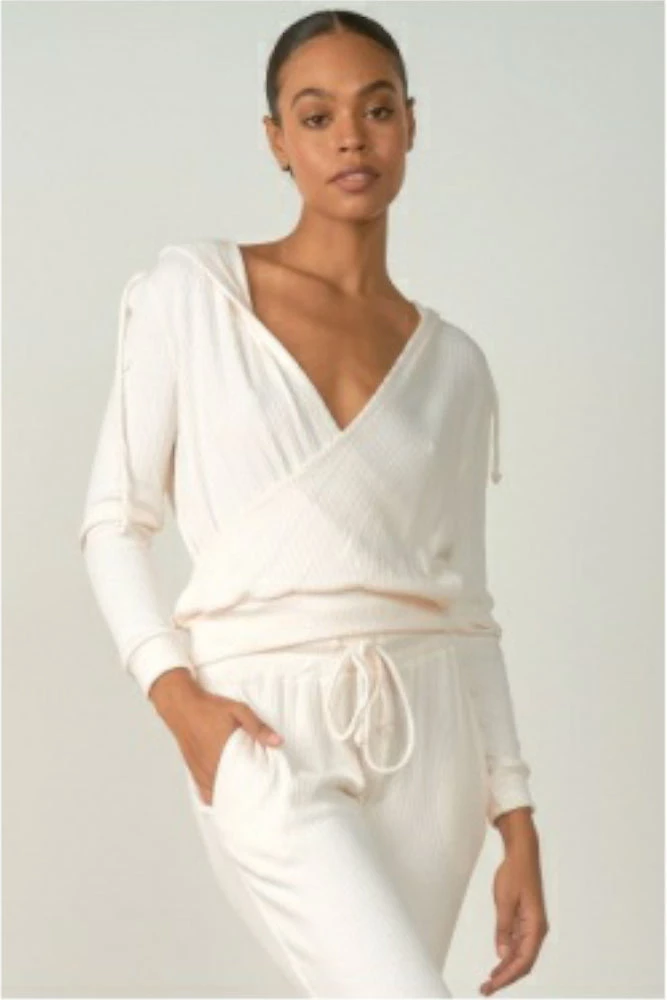 Sage The Label Elan Rib Long Sleeve Hoodie – CREAM