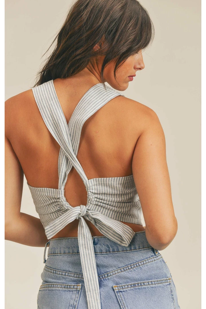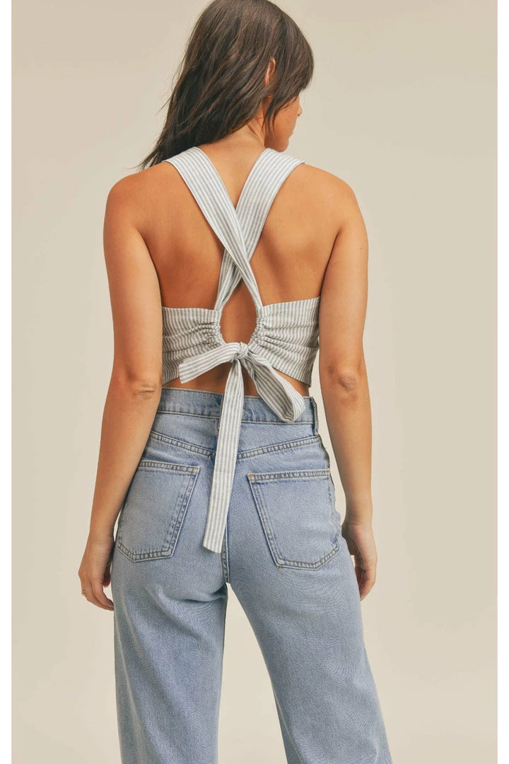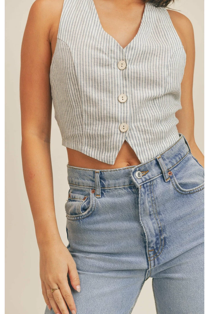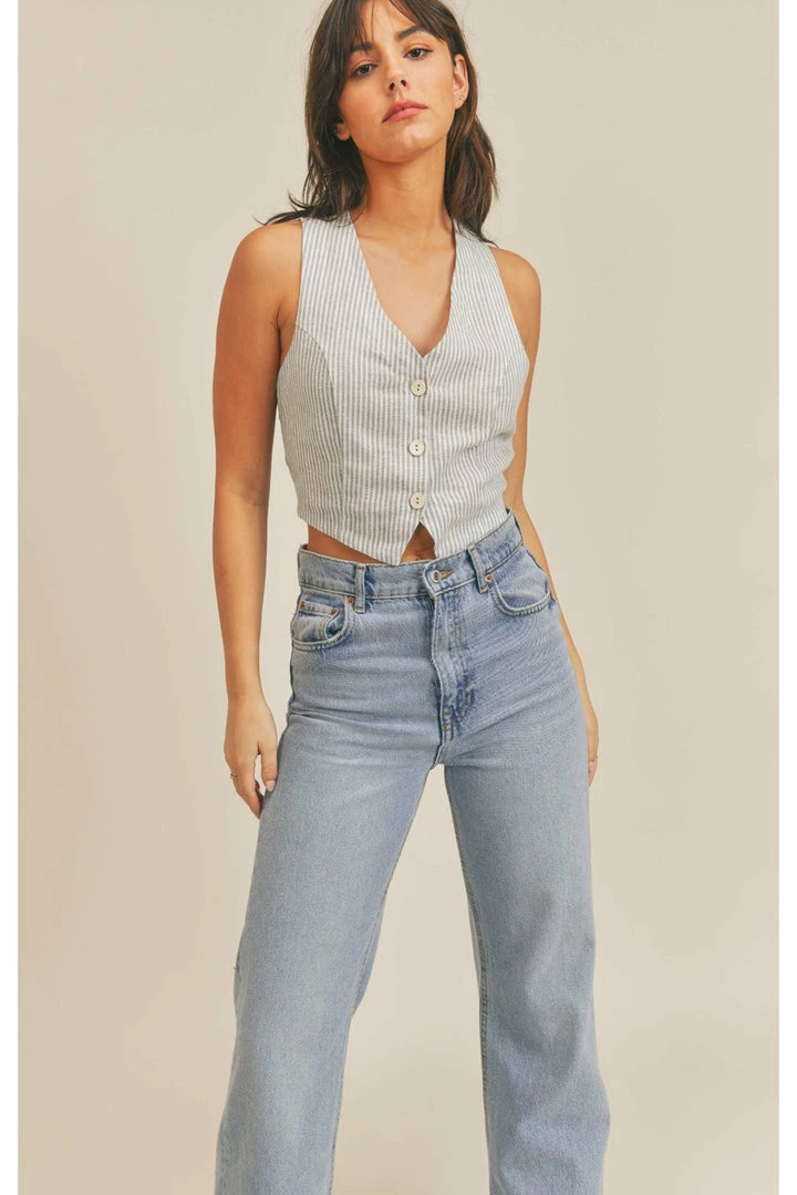 The Sage The Label Johanne Blazer is a staple for spring in a subtle stripe. Pair it with the Johanne Wide Leg Pants for an elevated look.