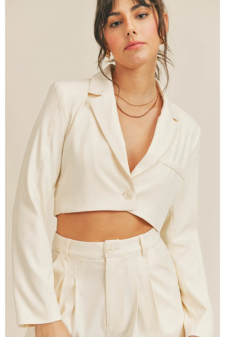 Our Standing Here Blazer is cropped taking a fun twist on a traditional blazer. Pair it with the Standing Here Shorts for a complete look.