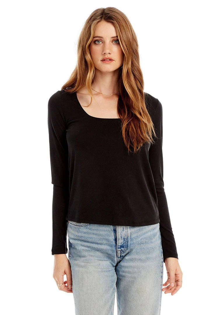 We’re taking it back to the 90s with this square neck ribbed top. It’s delicate and demure, with a healthy dose of bada**.