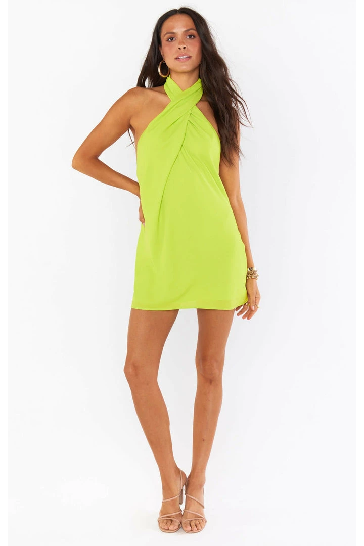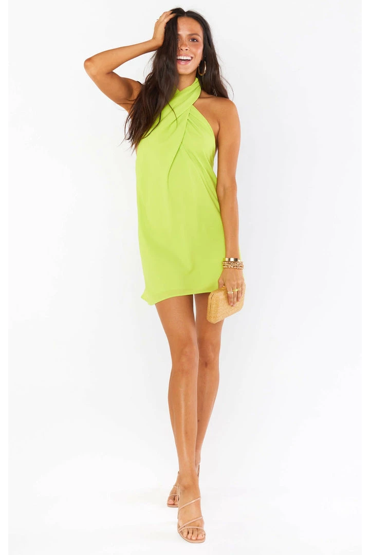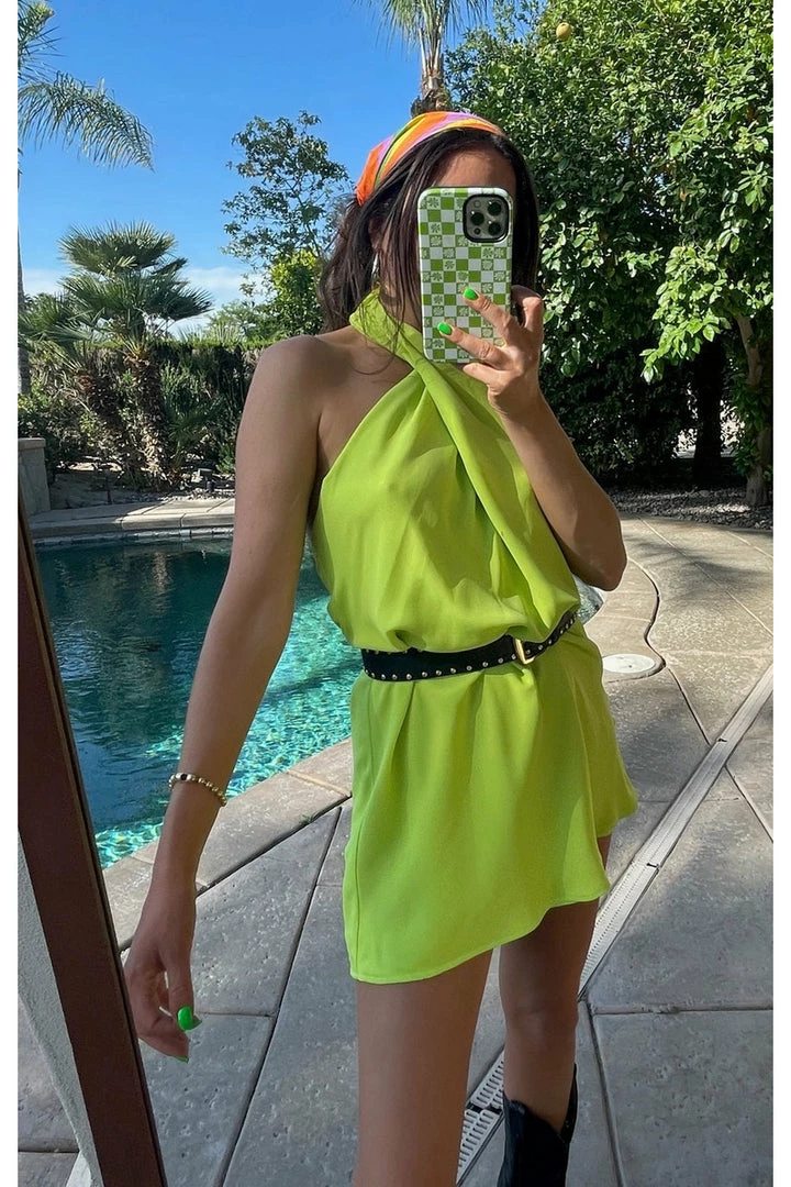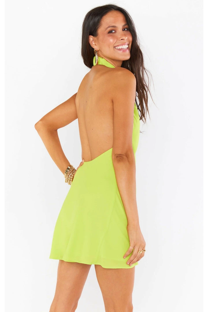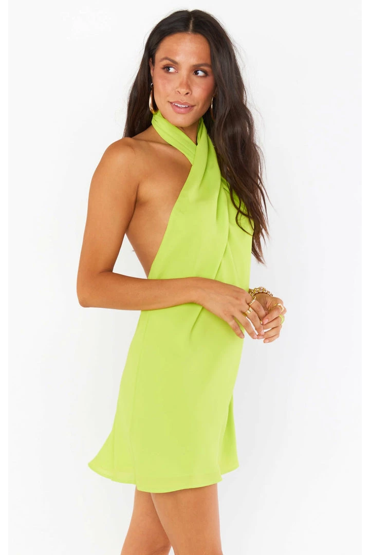 This citrine mini is cut on the bias to give that perfect slip draping we’re all looking for. The top softly wraps around your neck for a flattering high neck and leaves a dramatic open back. A new go-to for special occasions and a vacay date night!