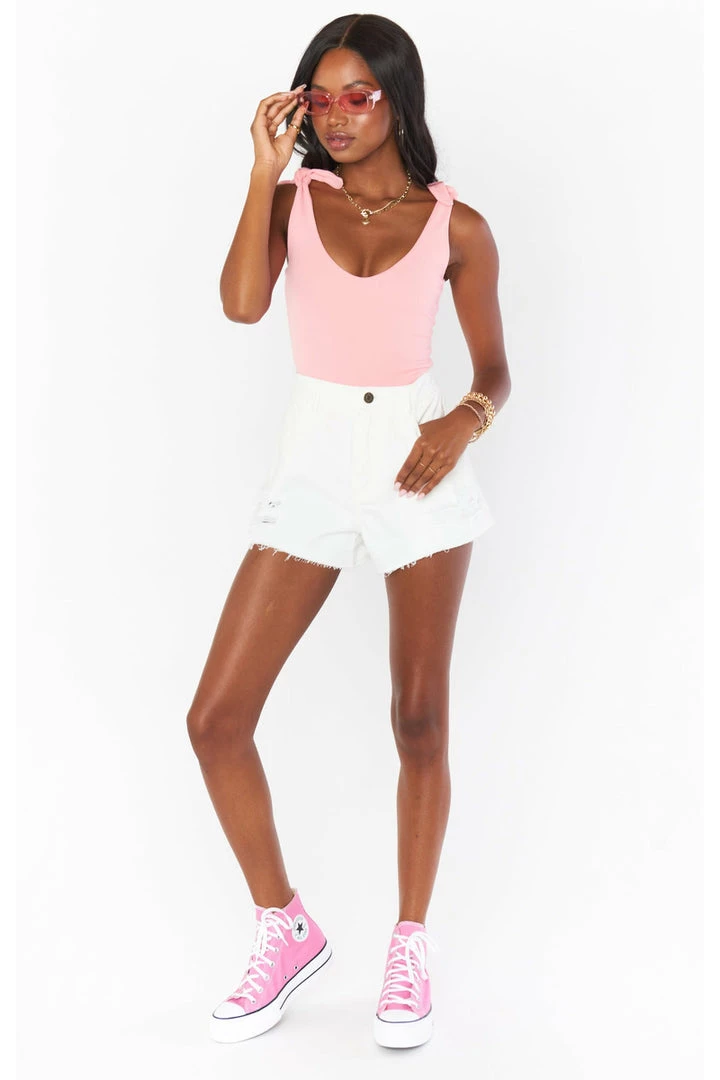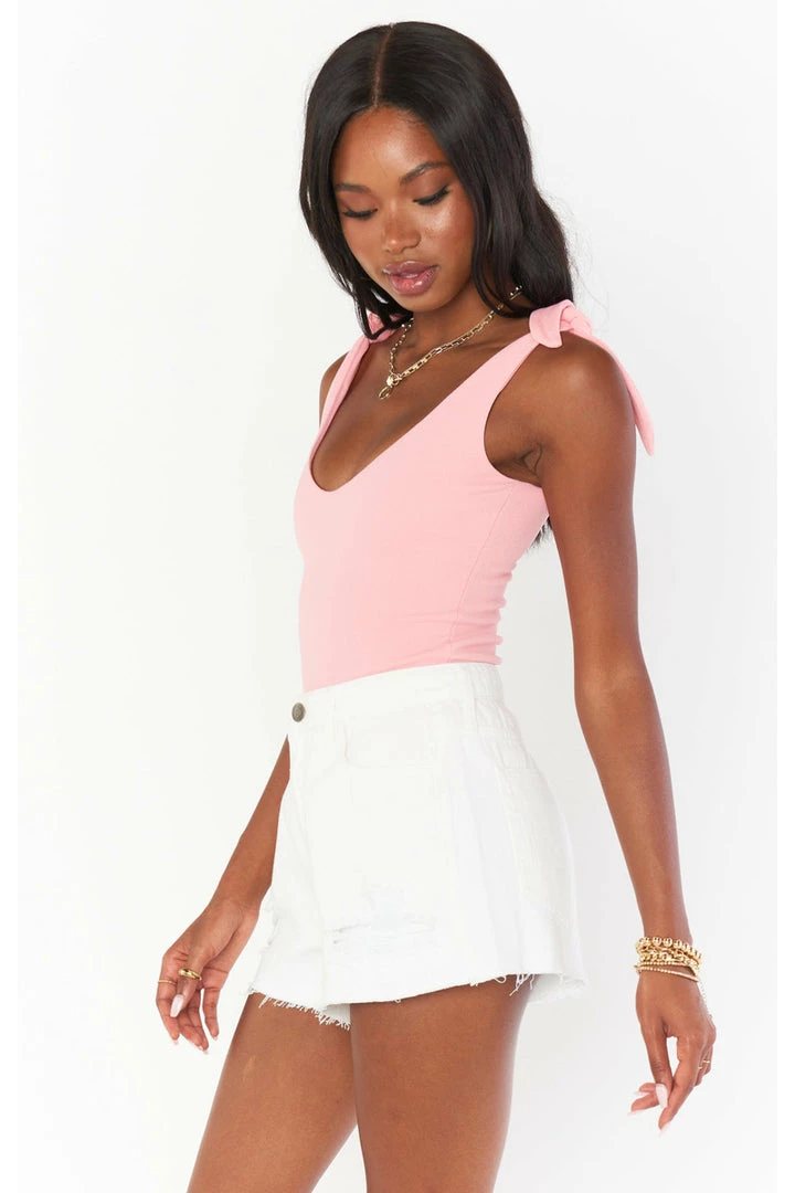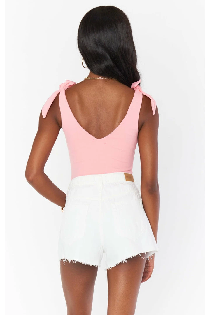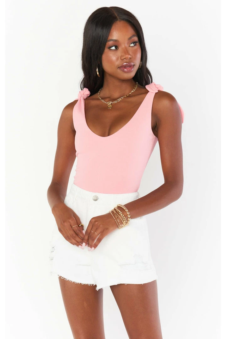 The bodysuit you’ll be wearing on repeat! Thick material makes this bra free friendly, and the close fitting design will have you looking tailored all day long. Pair with a skirt for an elevated look or your fave Mumu denim for a casual chic look. True ties at the shoulders let you customize your chest coverage.