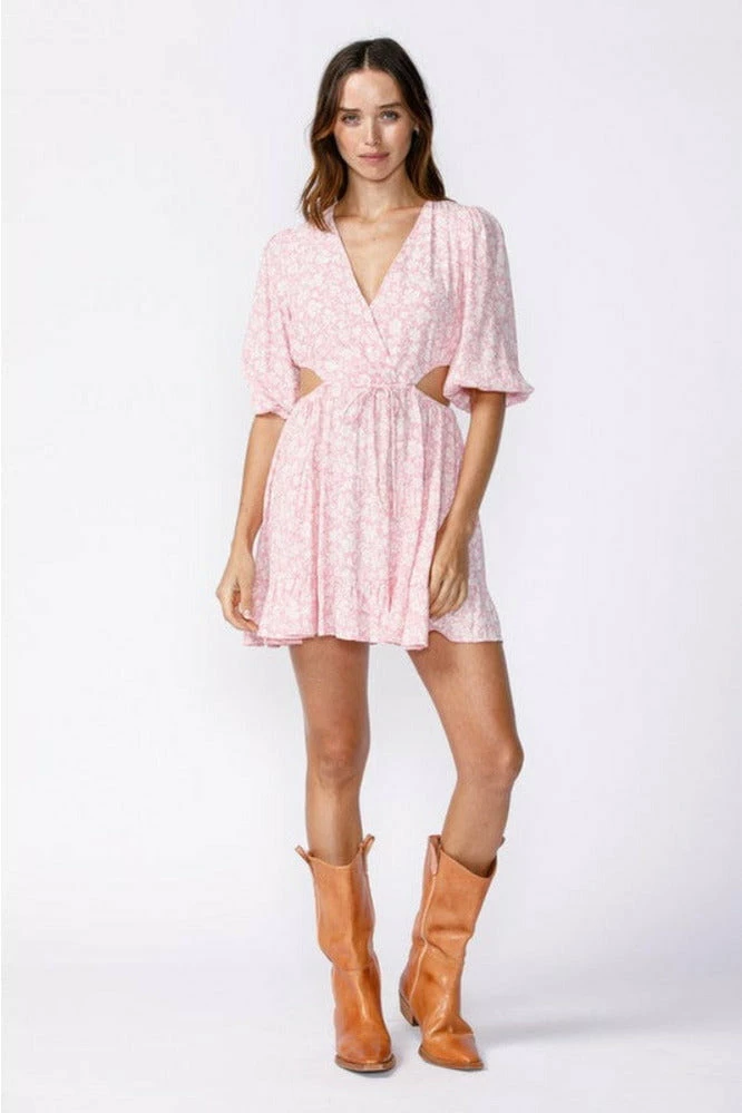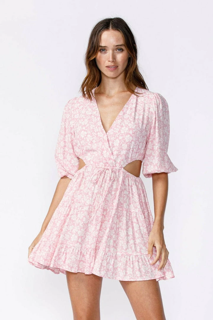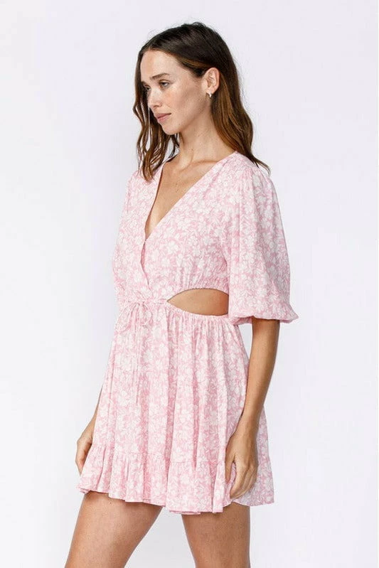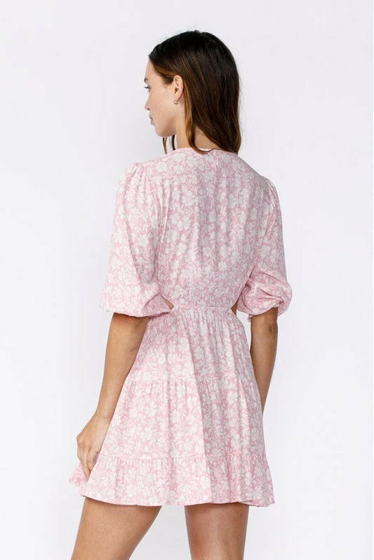 This Sky To Moon floral print V-neck mini features flare sleeves and waist cut-outs.