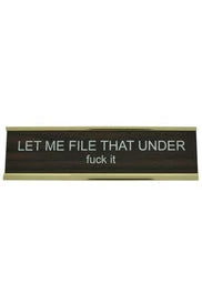 Treat everyday like Friday and file it under f*** it! This brass retro style name plate makes a funny gift for someone special. Whether it’s for a friend, boss ,co-worker or yourself this clever desk topper is bound to get a laugh!