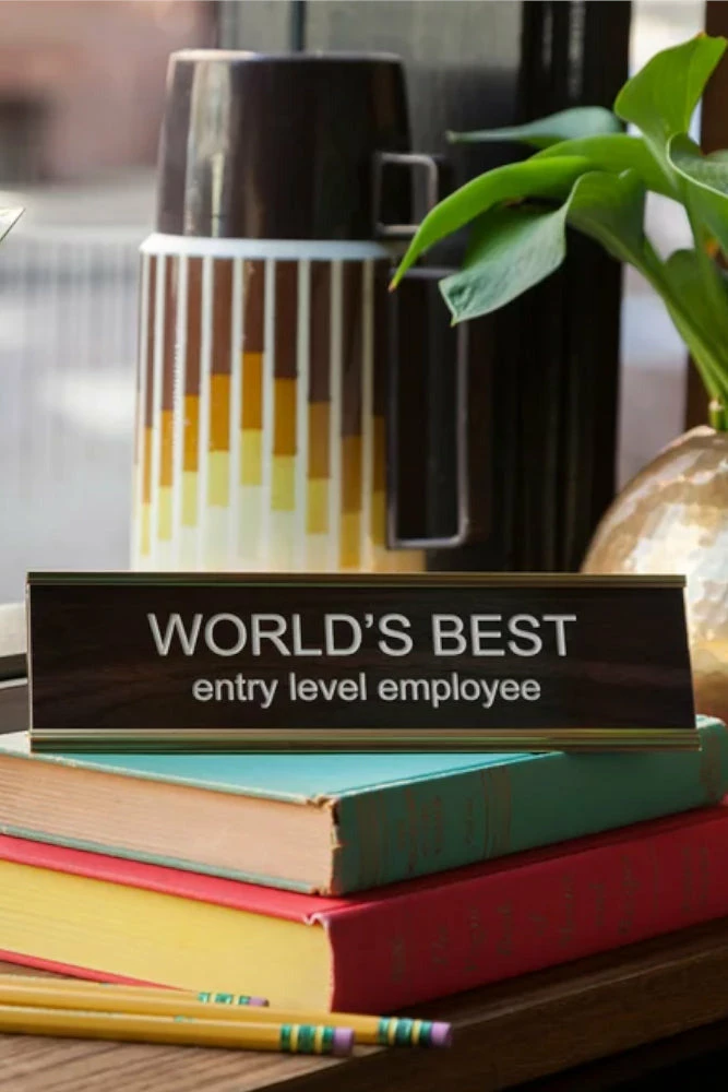 Perfect for a college grad! This brass retro style name plate makes a funny gift for someone special. Whether it’s for a friend, boss ,co-worker or yourself this clever desk topper is bound to get a laugh!