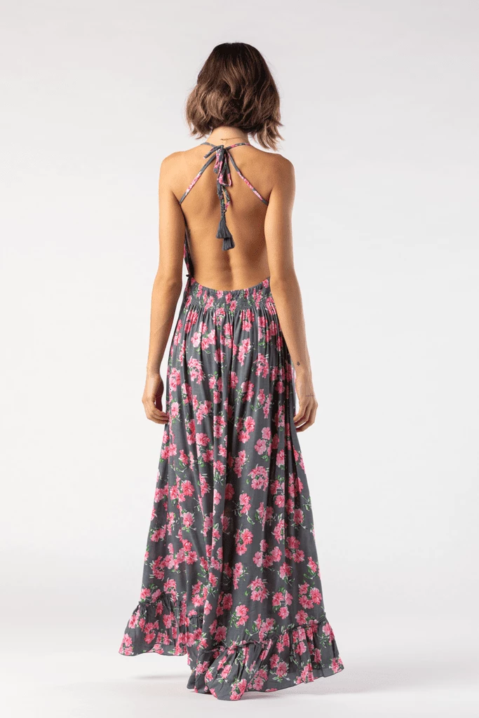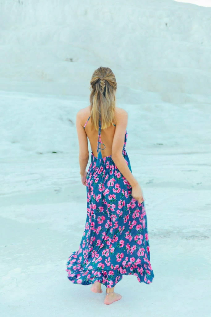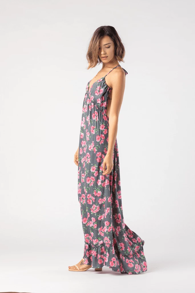 Escape to paradise in the Nanea Maxi Dress! Rayon fabric sweeps from an alluring plunging neckline and back (supported by adjustable tie spaghetti straps) and into a set-in waist. Pair with your favorite heels and accessories.