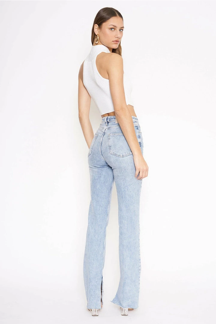 Cropped tank with a keyhole cutout and wrapped fabric that creates a high neck.