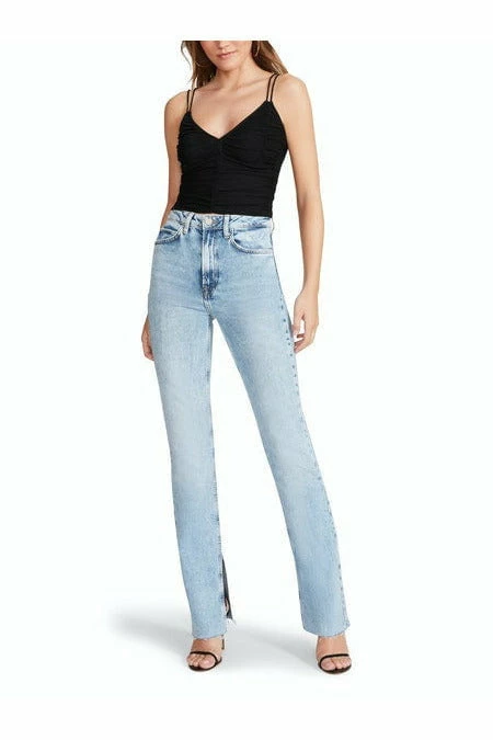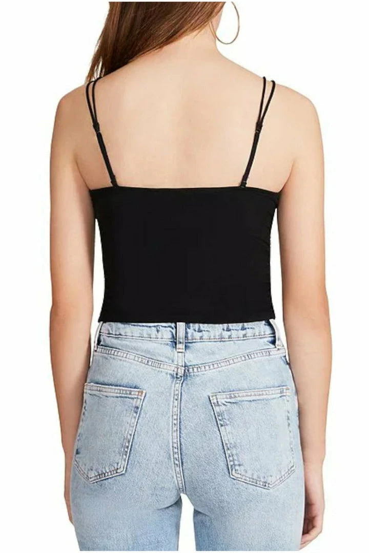 This cami from BB Dakota has a V-Neck and double spaghetti straps with a mesh ruched fabric.