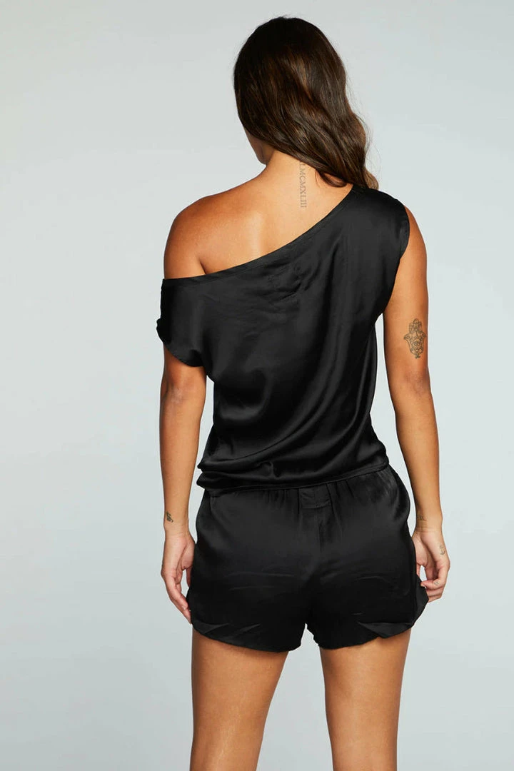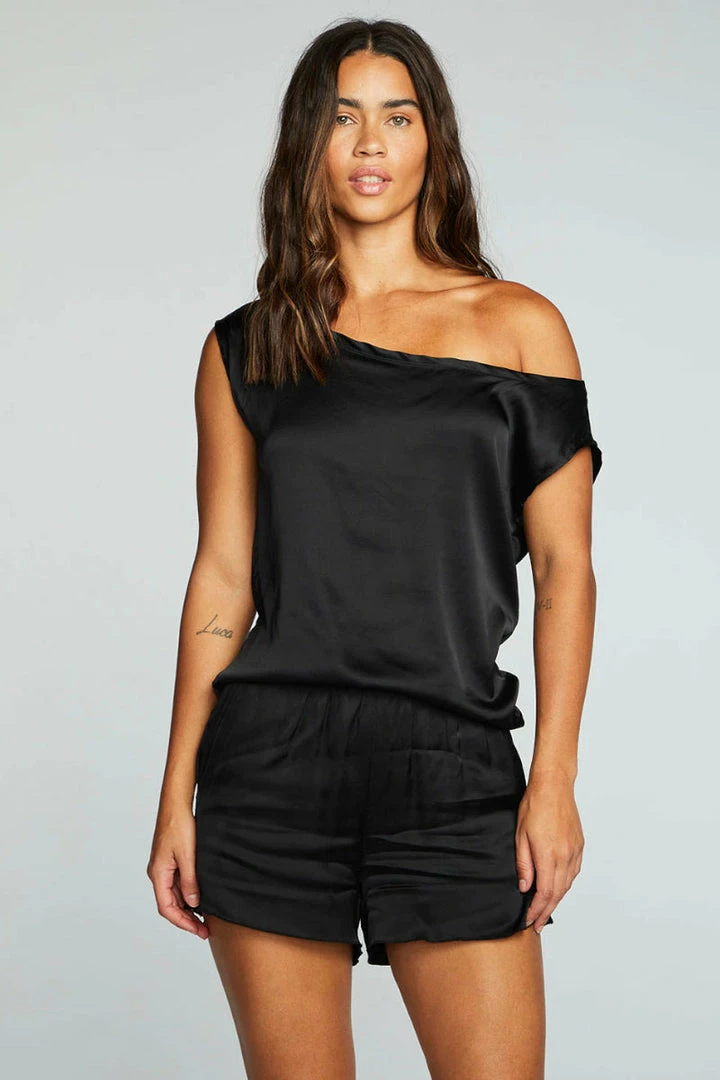 Our Stretch Silky Basics Off The Shoulder Sleeveless Top features imported fabric.