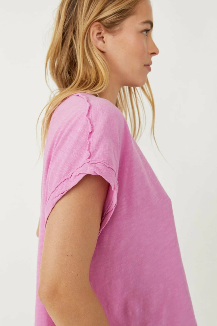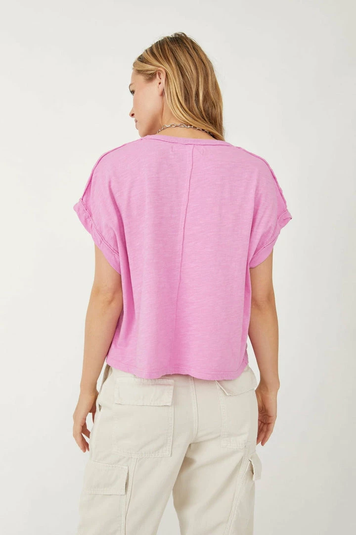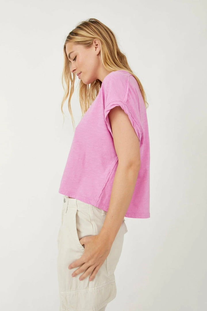 An effortless essential for everyday style, this perfect vintage-inspired tee is featured in a boxy, cropped silhouette with rolled sleeve cuffs for added dimension.