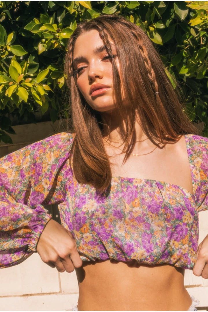 This Le Lis long sleeve bubble tube crop top can be worn on or off the shoulder.