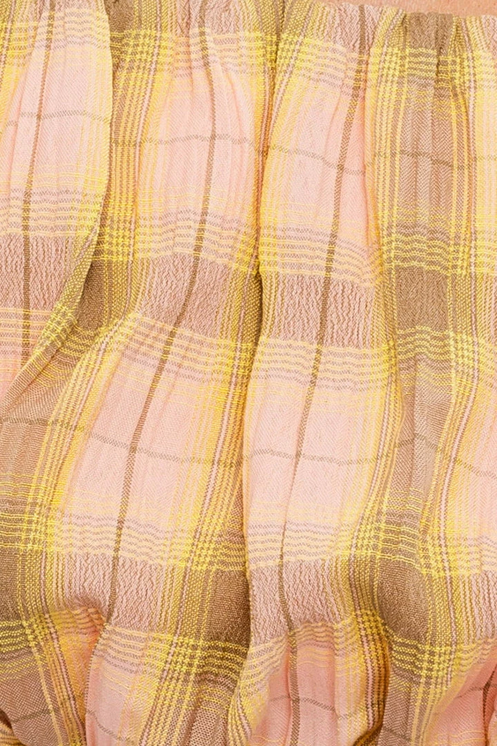 Elastic Waist Plaid Paper Bag Shorts, pair with the Le Lis Plaid Crop Top for a complete set.