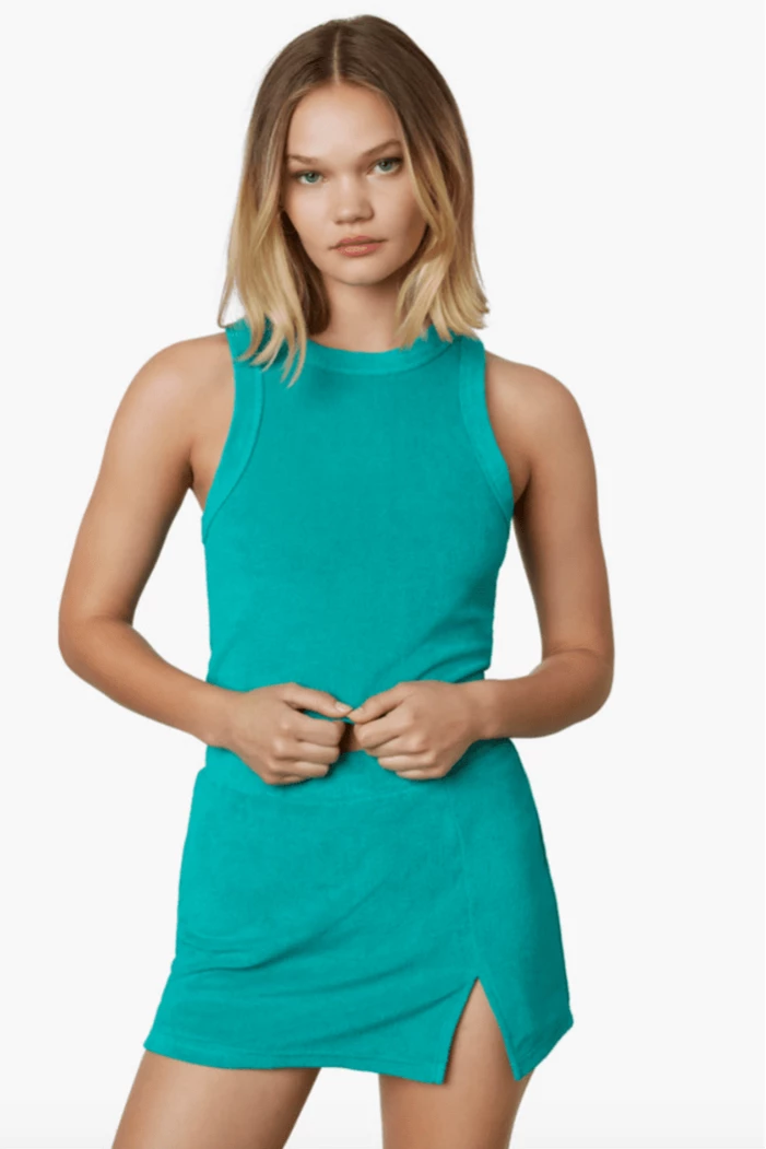 A cropped high neck terrycloth tank. Pair with the Melrose Terry Skort and make it a set.