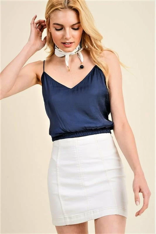 Silky cropped tank w adjustable straps. Pair with the Reset By Jane Amore Tiered Skirt for a complete set.