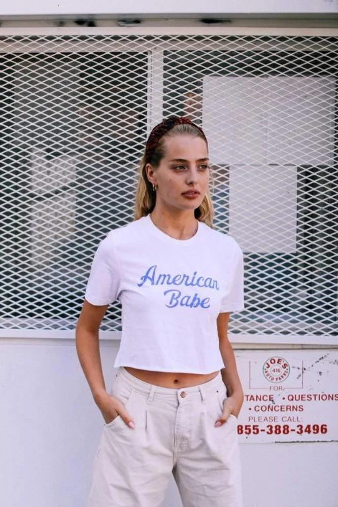 American Babe Graphic Crop Tee. 100% Premium Cotton. Made in the USA