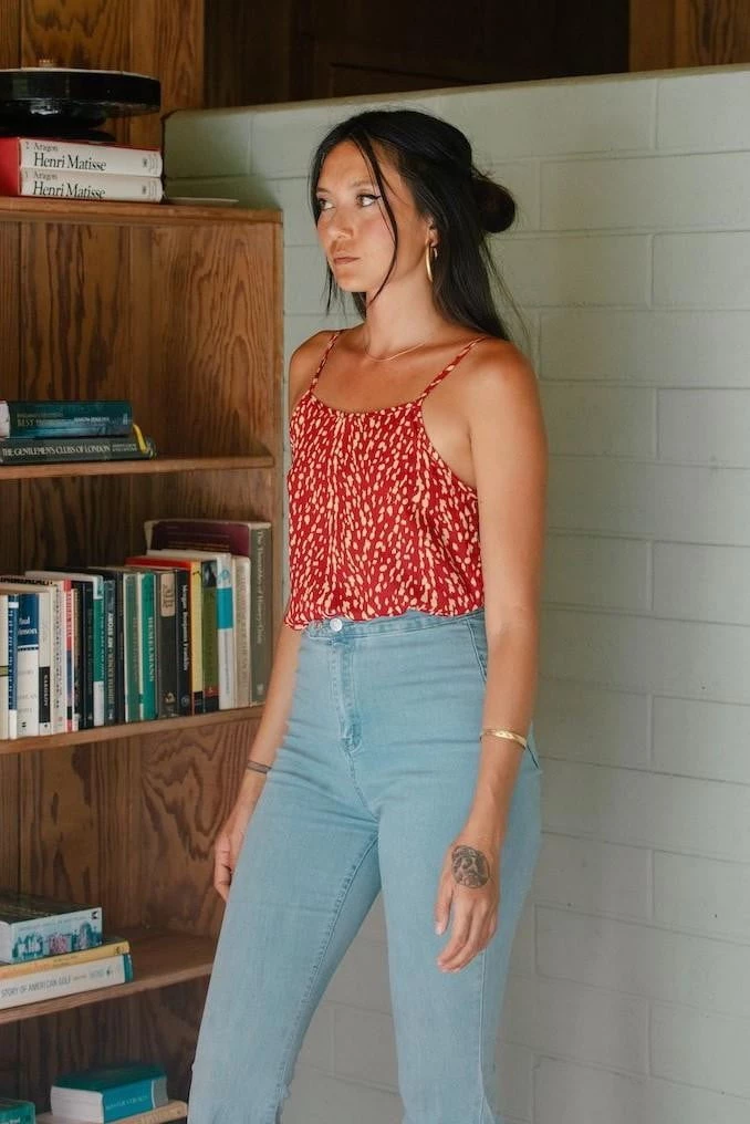 This cami pairs well with everything, making it a wardrobe essential. Features adjustable straps and a sexy, open back.