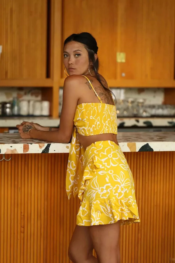 If you’re going to wear a top it’s this one. Features adjustable straps, back smocking and elegant wrap around ties. Pairs well it with our Resort Skirt, Wrap Skirt and/or high waisted denims. You’ll forget about all your other tops.