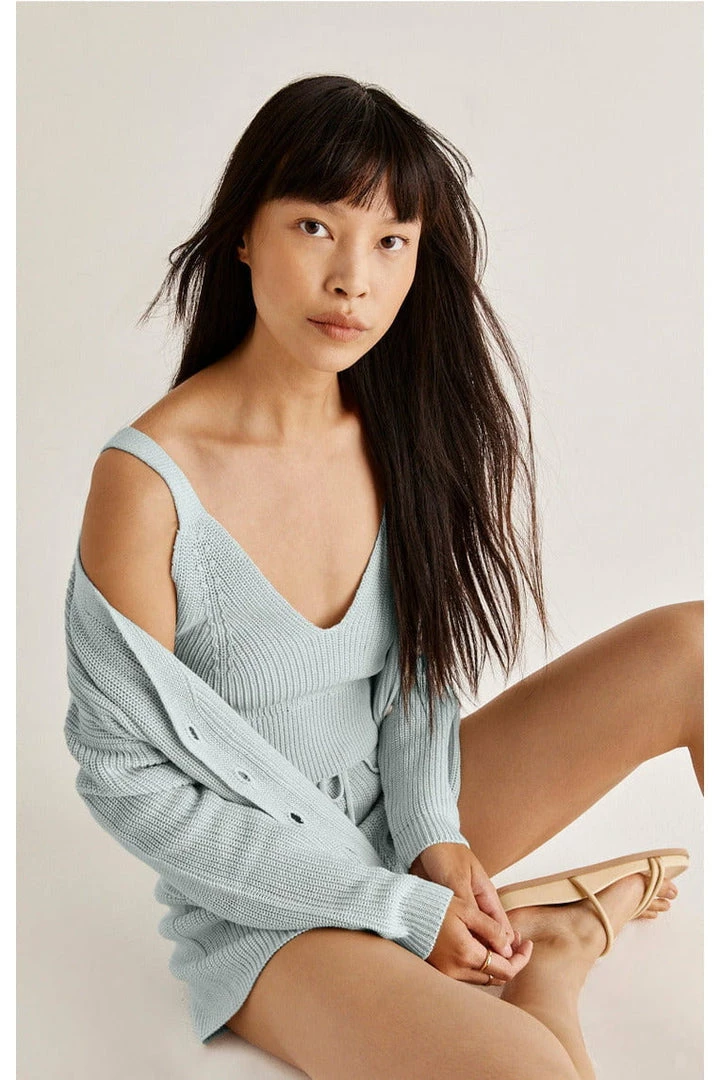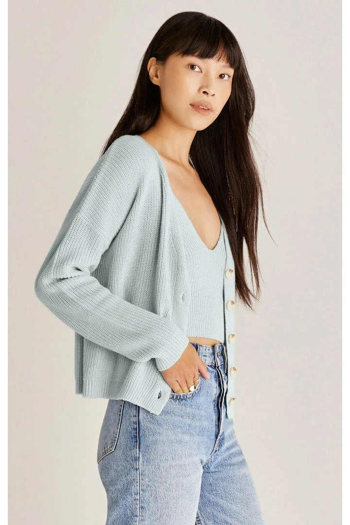 Two pieces are better than one! Part of our two-piece set, the v-neck Morgan Cardigan is cropped and relaxed with ribbed details. This button-up layer adds warmth and style.