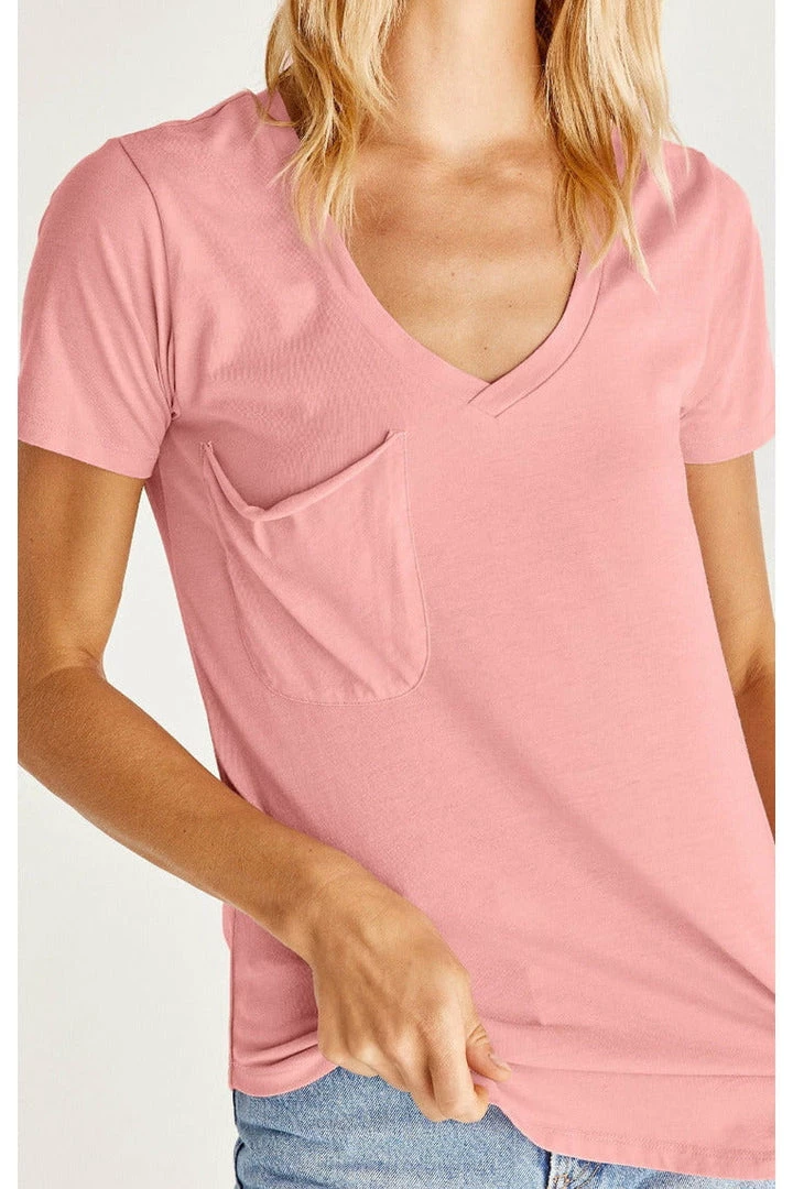 Favorite tee is an understatement. Made from our signature burnout jersey, this tee is complete with a curved v-neckline and a slouchy raw edge pocket. Because of its soft feel and chic fit, you will want to stock up in every color.