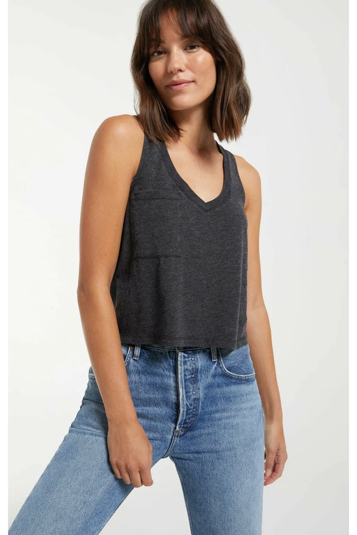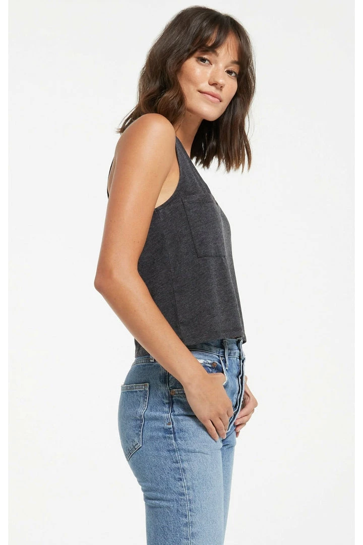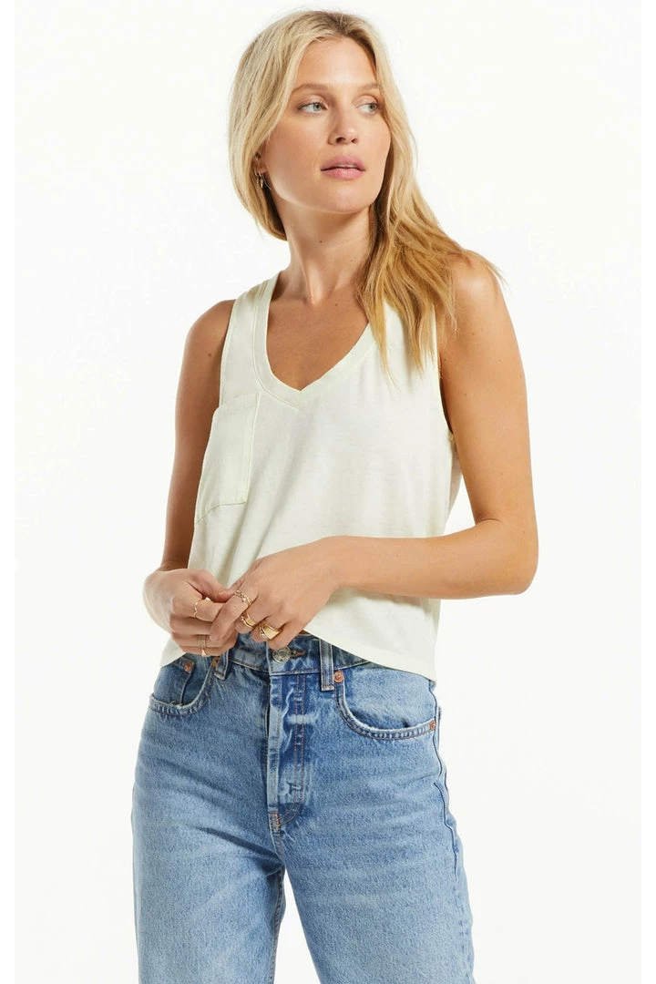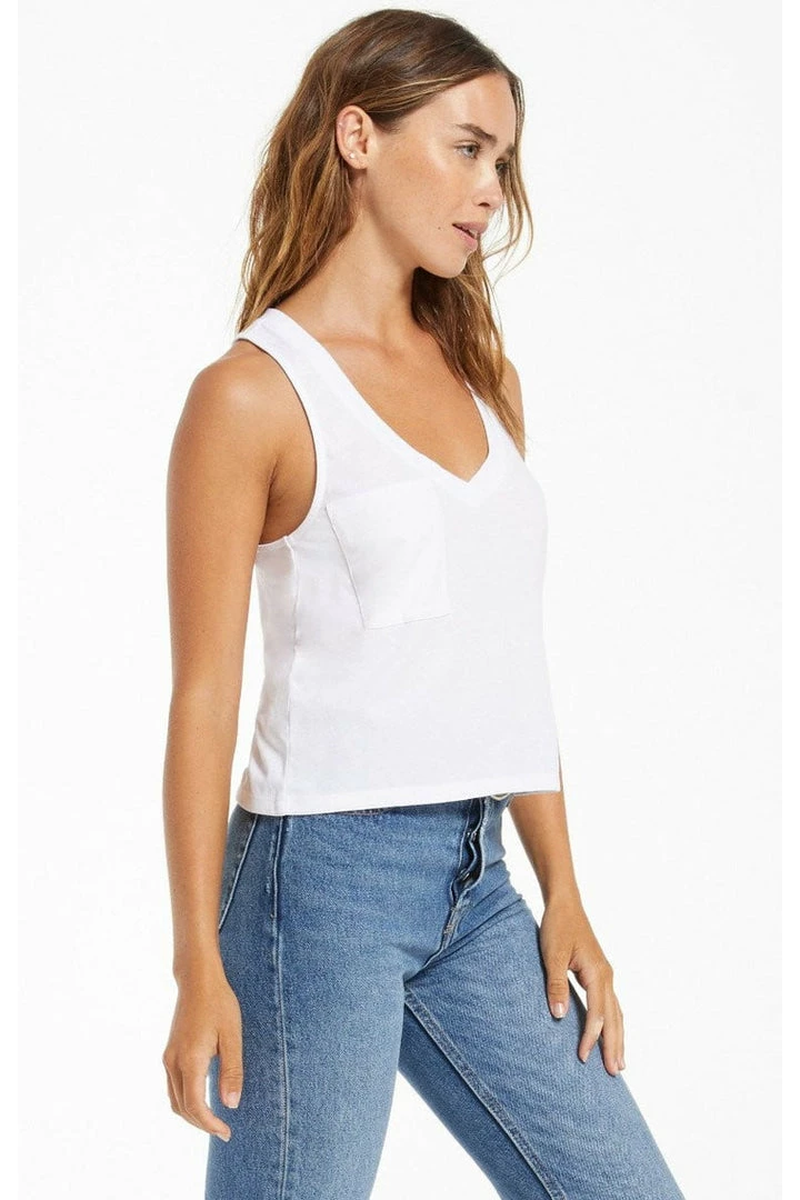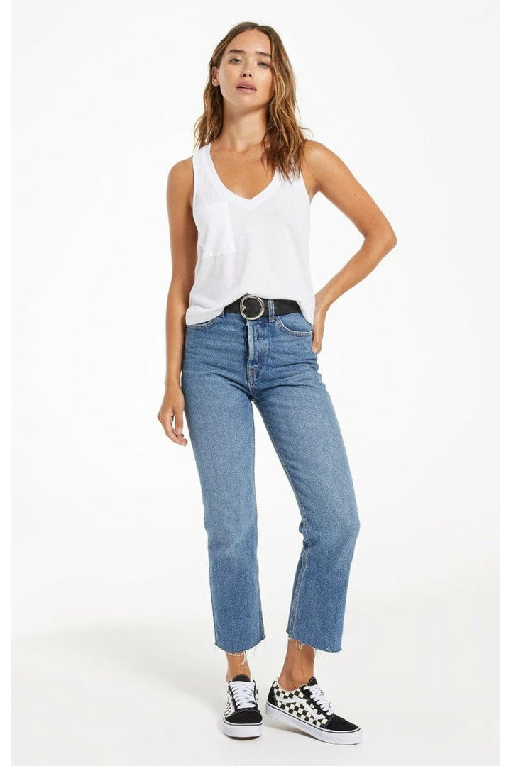 The Skimmer Pocket Tank is an update to our Pocket Racer Tank, this time in our popular skimmer length. The racer back style, v-neck design and relaxed fit make this an ideal grab-and-go staple for warmer weather. With our signature burnout treatment, this cotton jersey knit top will wear uniquely over time and get softer the more you wear it. We love it paired with high-waisted denim!