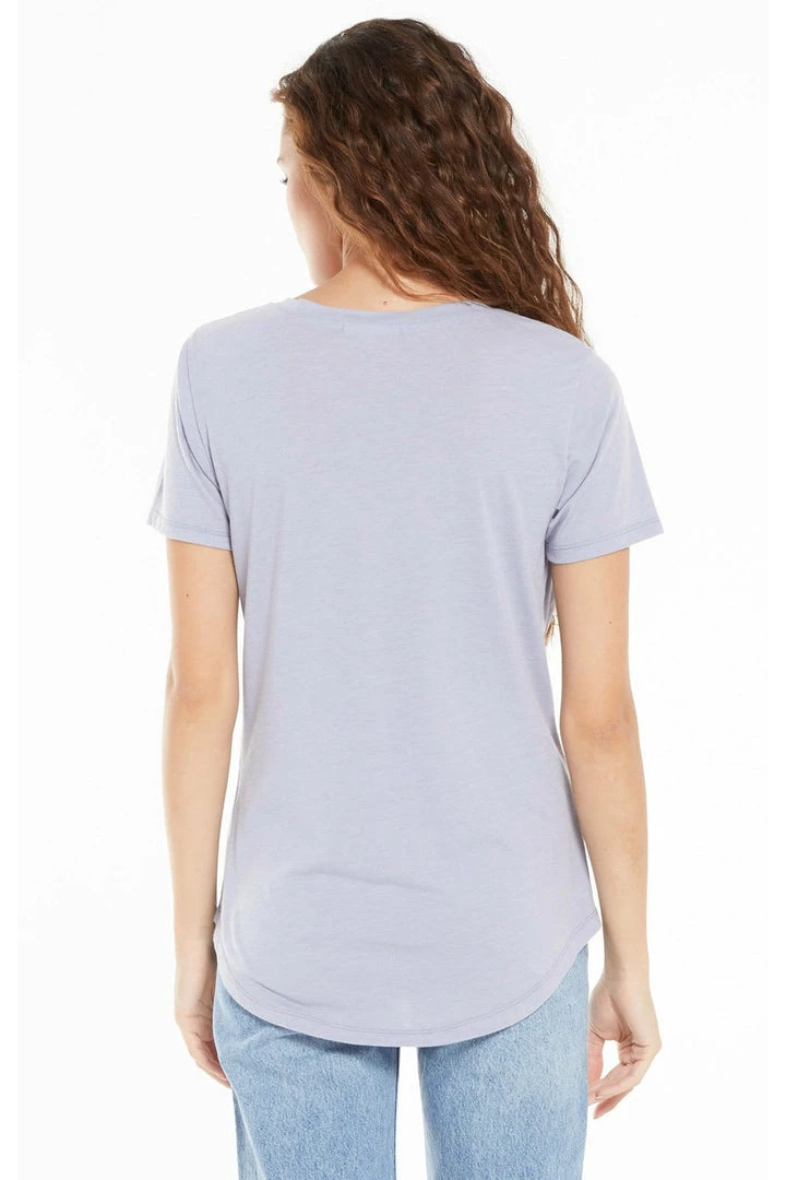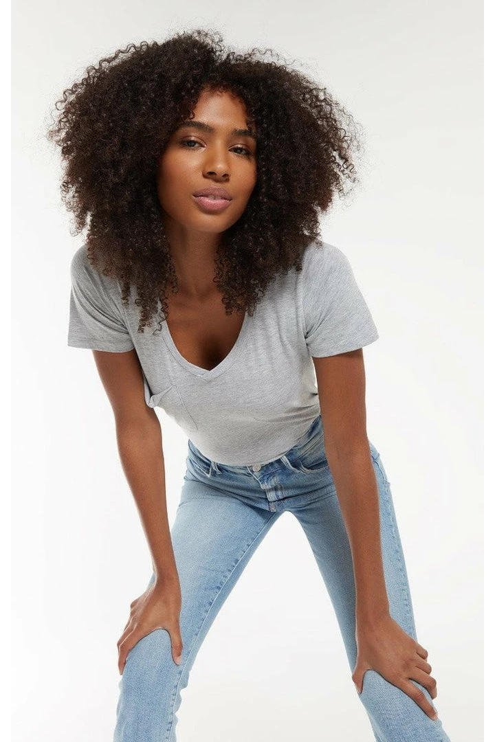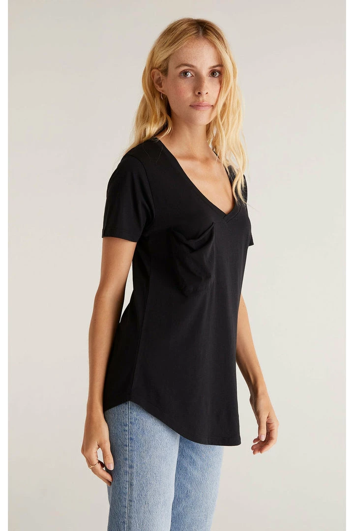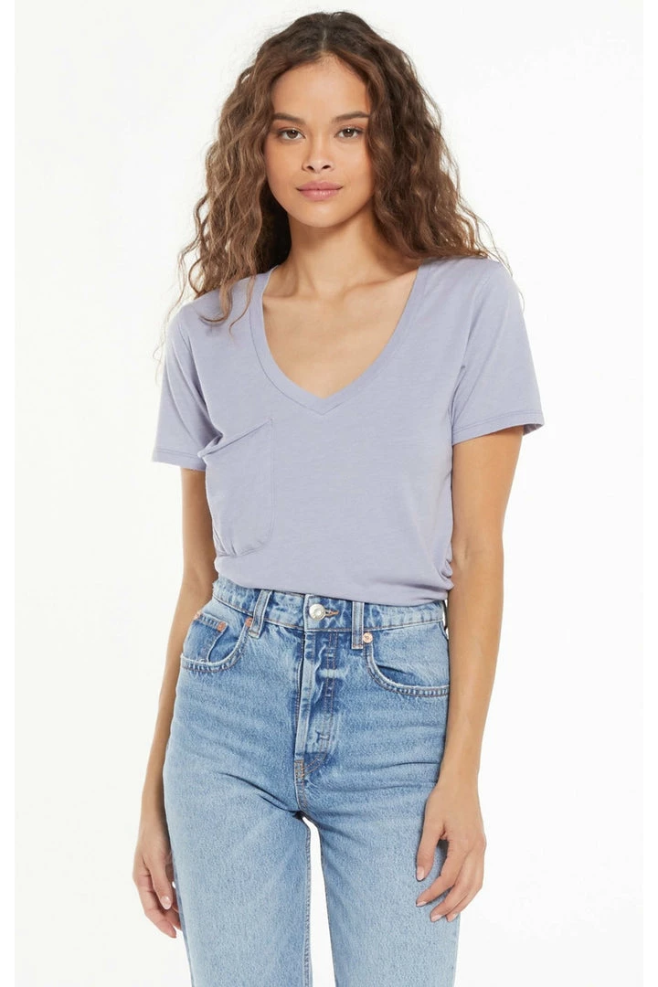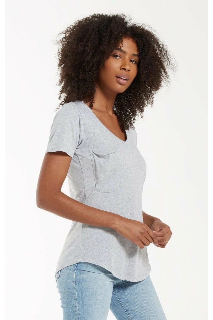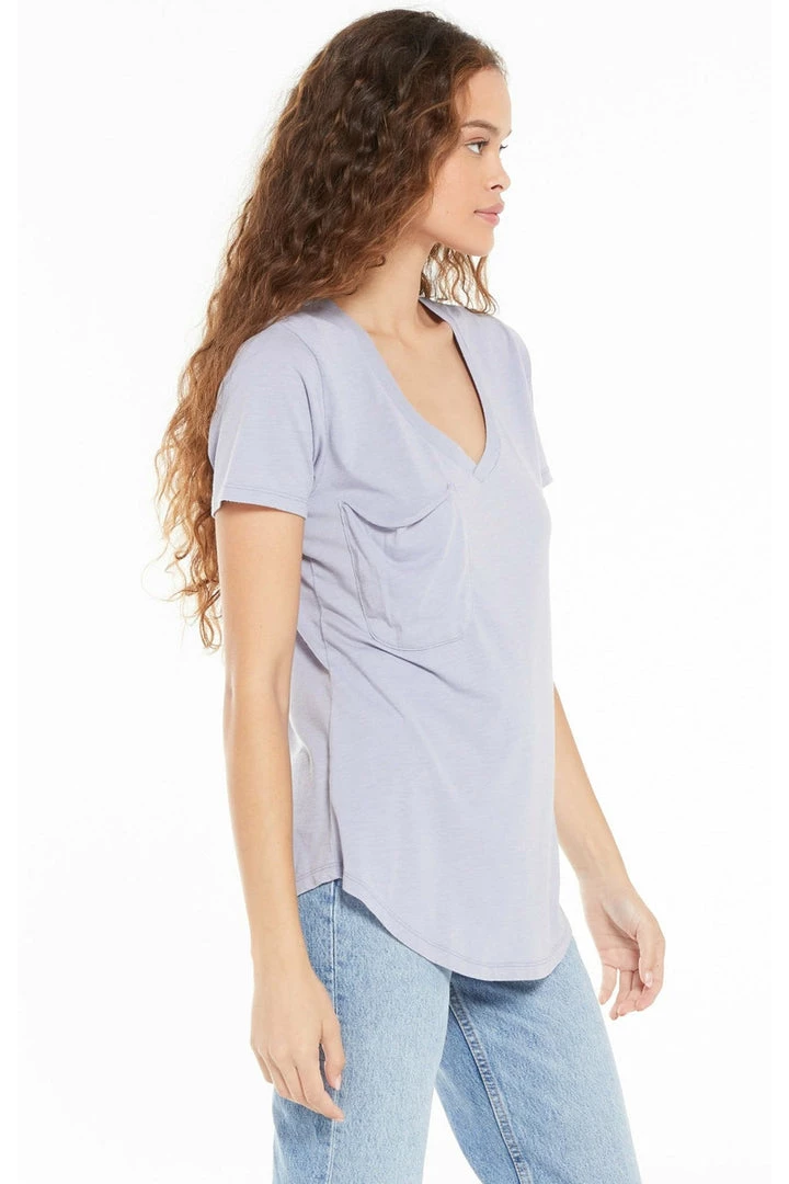 Favorite tee is an understatement. Made from our signature burnout jersey, this tee is complete with a curved v-neckline and a slouchy raw edge pocket. Because of its soft feel and chic fit, you will want to stock up in every color.